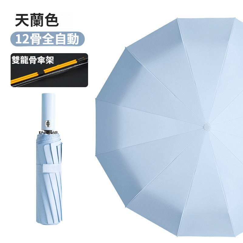 【自動款24股加強纖維黑膠☆晴雨兩用】-天空藍