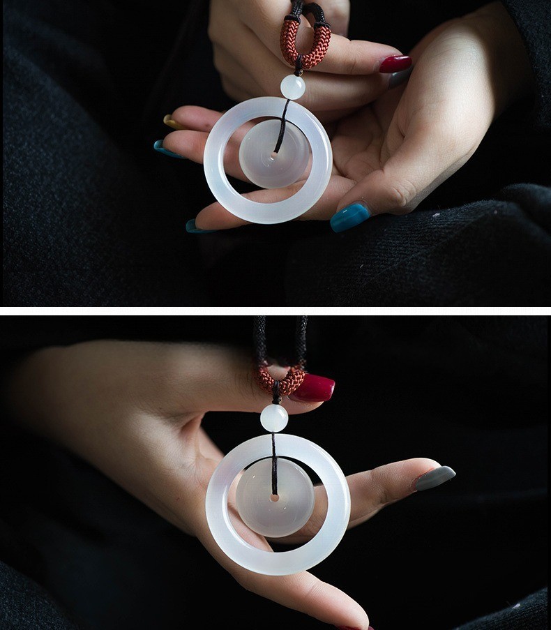 第 1 件 : 瑪瑙玉髓平安扣吊墜 玉髓平安環葫蘆佛套環毛衣鏈