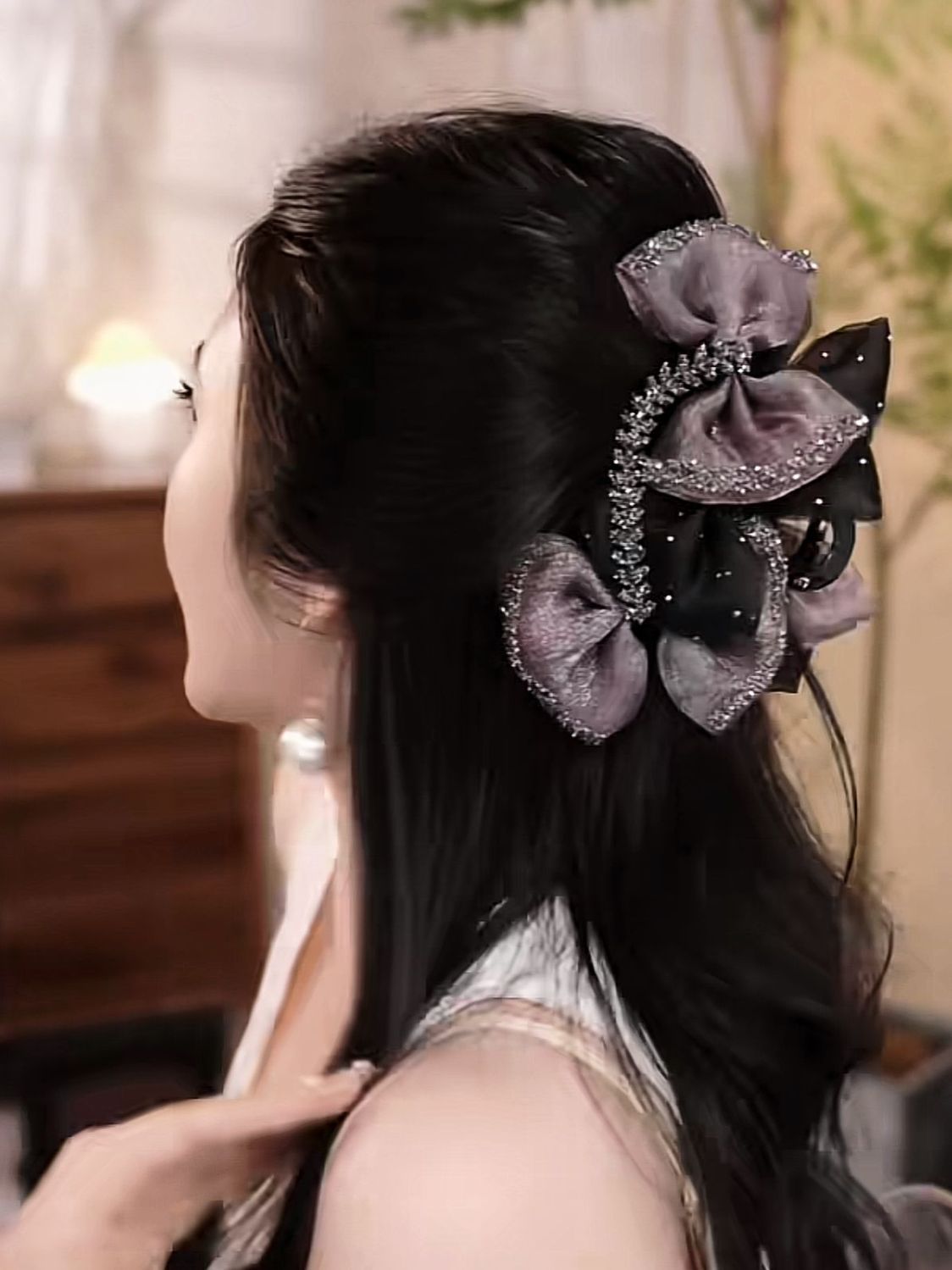 第 4 件 : AB面滿天星蝴蝶結氣質百搭抓夾新款後腦勺盤髮夾小香風鯊魚夾髮飾