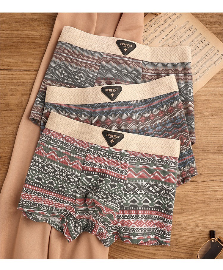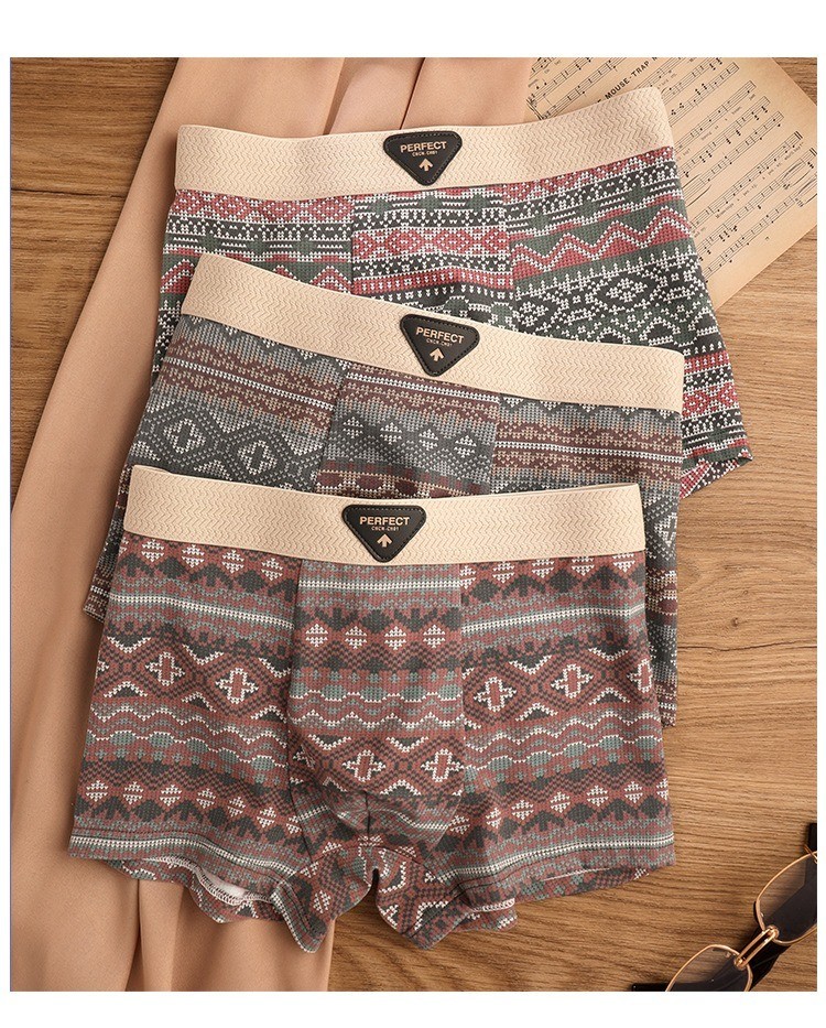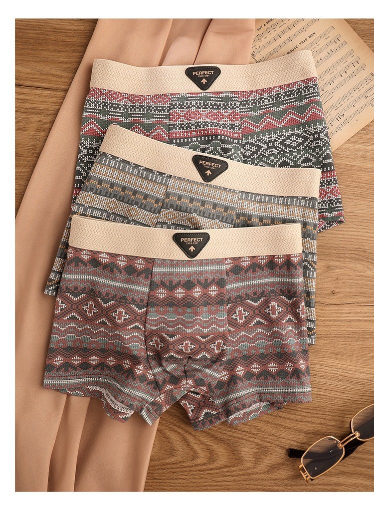 第 1 件 : 2025新款男士復古民族印花棉質薄款四角寬鬆透氣平角潮流運動內褲