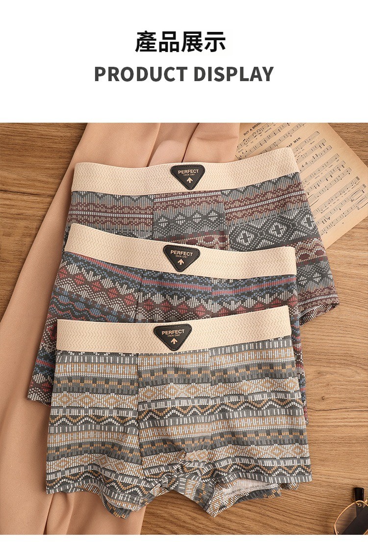 第 4 件 : 2025新款男士復古民族印花棉質薄款四角寬鬆透氣平角潮流運動內褲