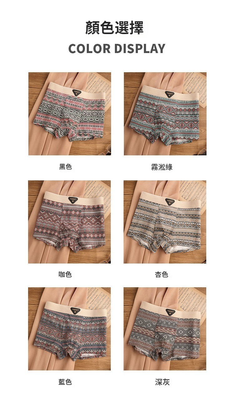 第 6 件 : 2025新款男士復古民族印花棉質薄款四角寬鬆透氣平角潮流運動內褲