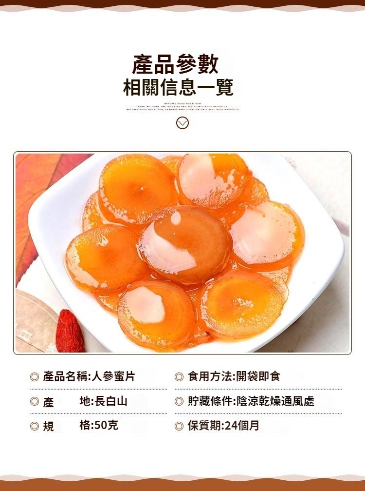 人參蜜片獨立包裝蜂蜜參片即食人參片鮮參蜜片
