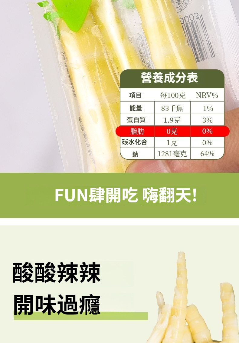 泡椒筍尖脆筍山椒酸筍小包裝竹筍休閑零食低卡零脂小零食開袋即食 NT$ 999