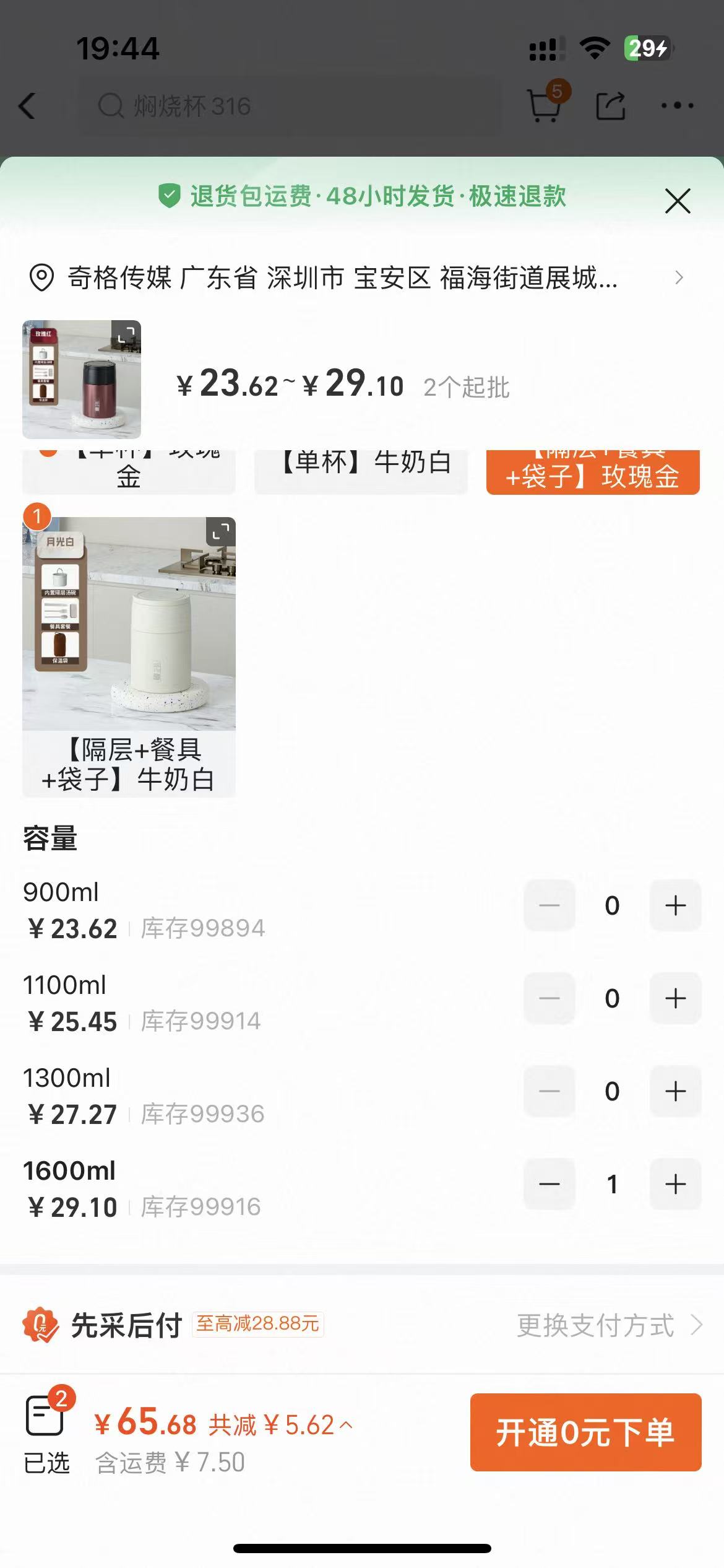 ②燜燒杯2個 71.3 https://qr.1688.com/s/t4bCDrxJ