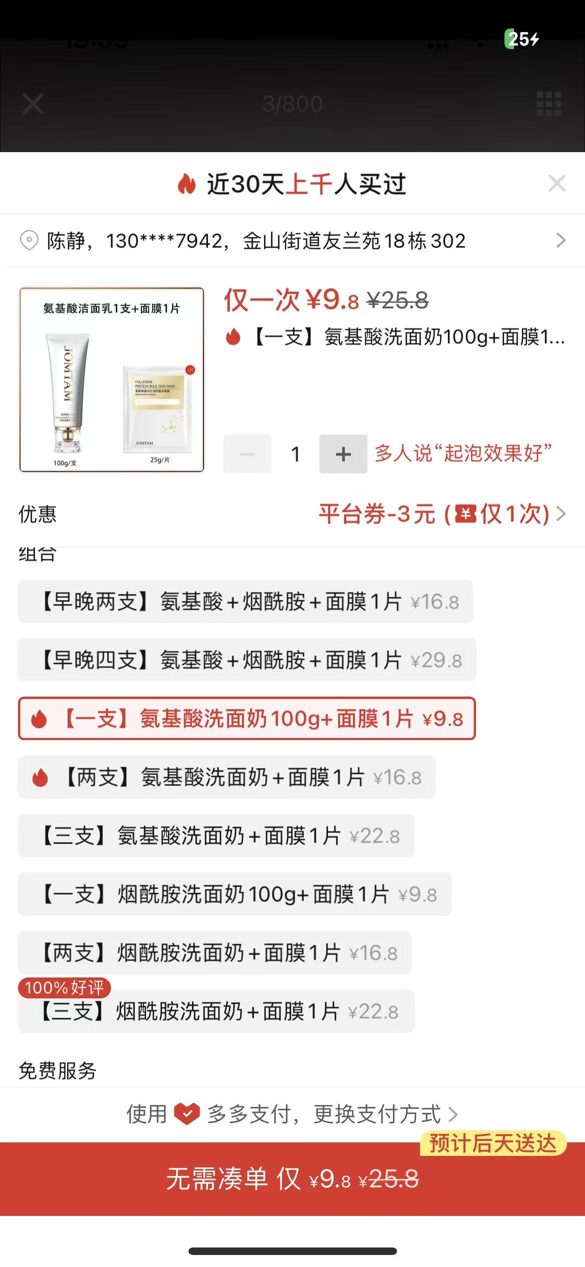 ③洗面奶1支 12.8 https://mobile.yangkeduo.com/goods2.html?ps=4LiGgLoVMv