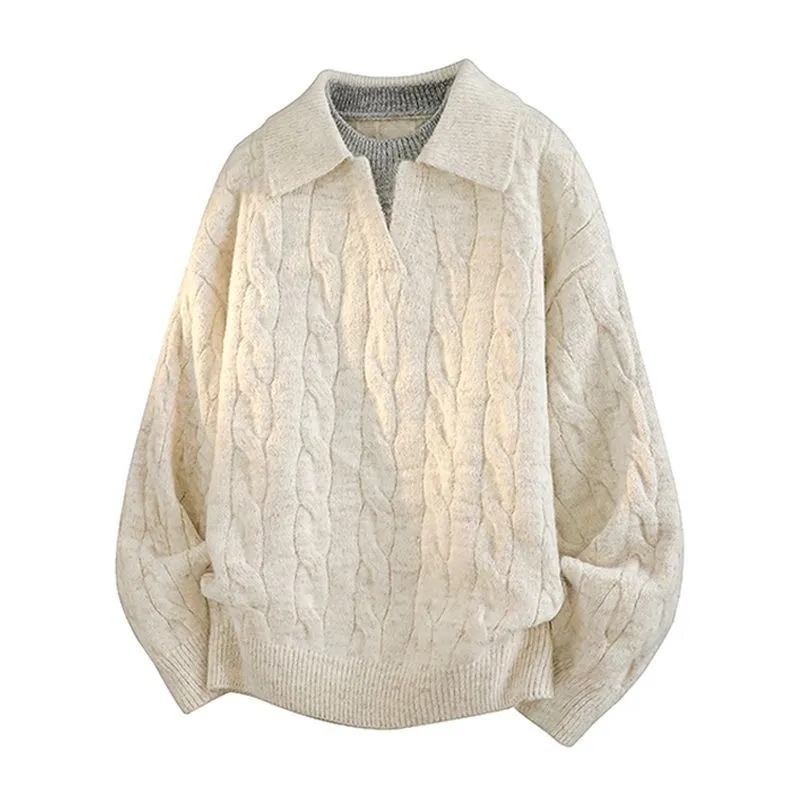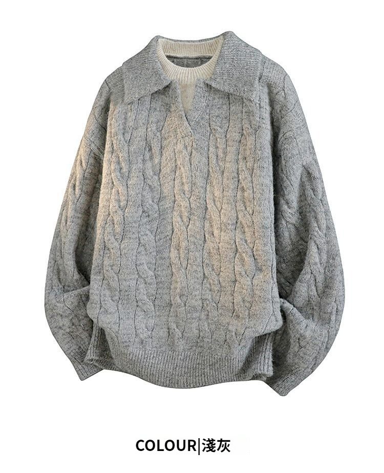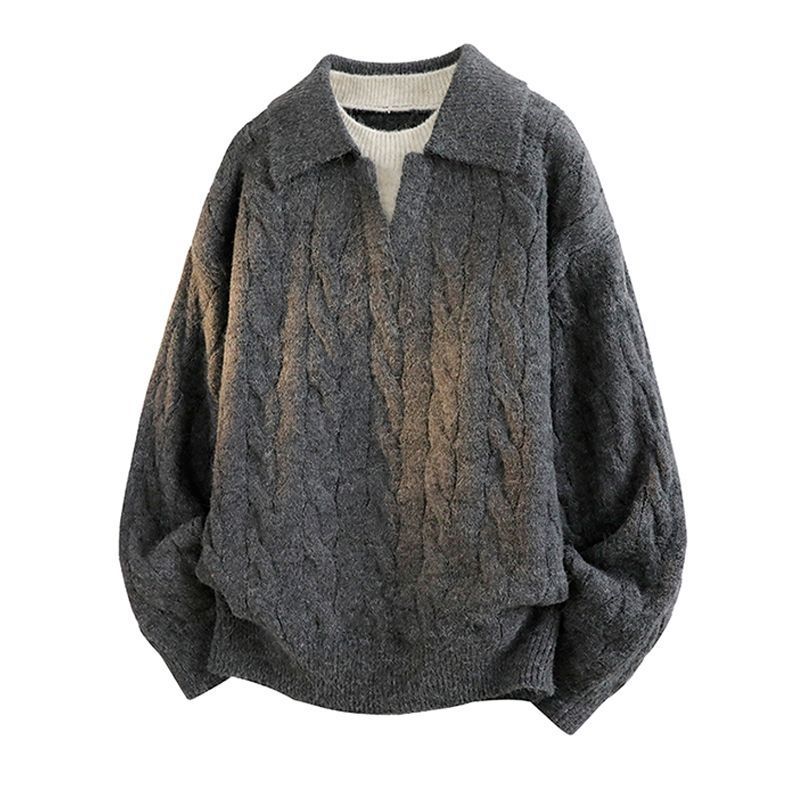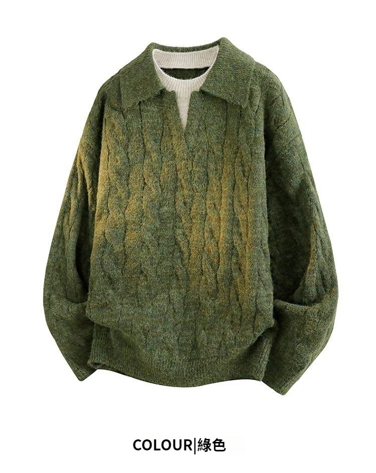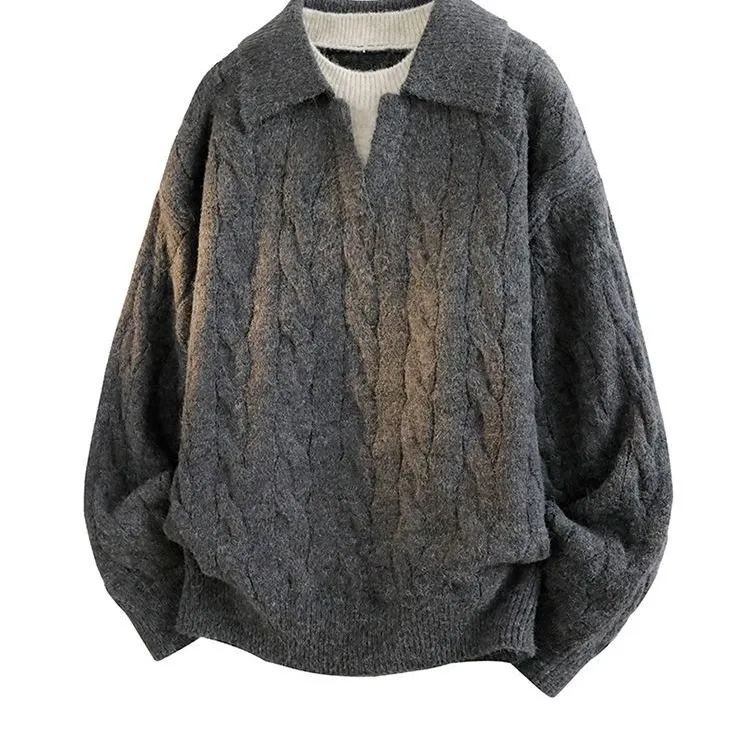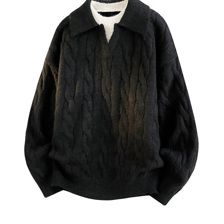 冬季新款美式風V領假兩件毛衣男士學生校服百搭休閑針織打底衫男