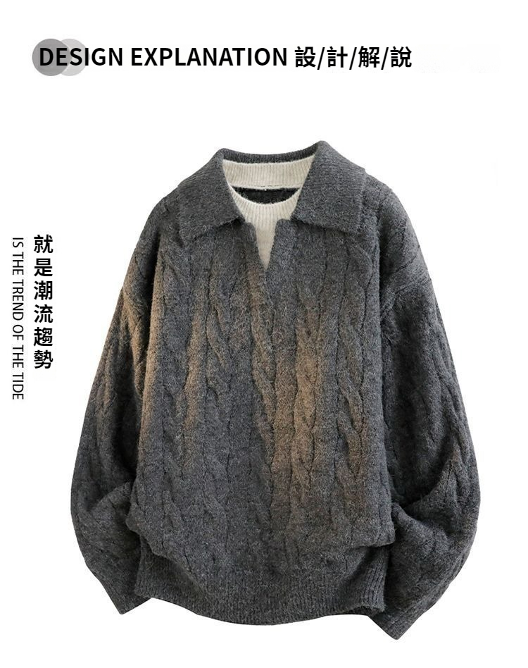 第 1 件 : 冬季新款美式風V領假兩件毛衣男士學生校服百搭休閑針織打底衫男