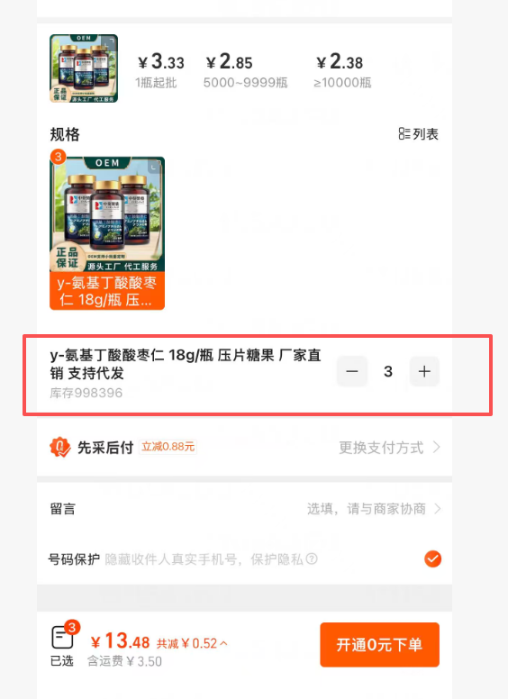 氨基丁酸酸棗仁 3瓶(帮忙看下实物和图片一样再出货,顾客很挑剔)