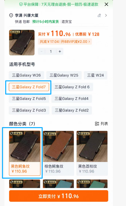 三星Galaxy Z Fold7【黑色鱷魚紋】手機殼 1個