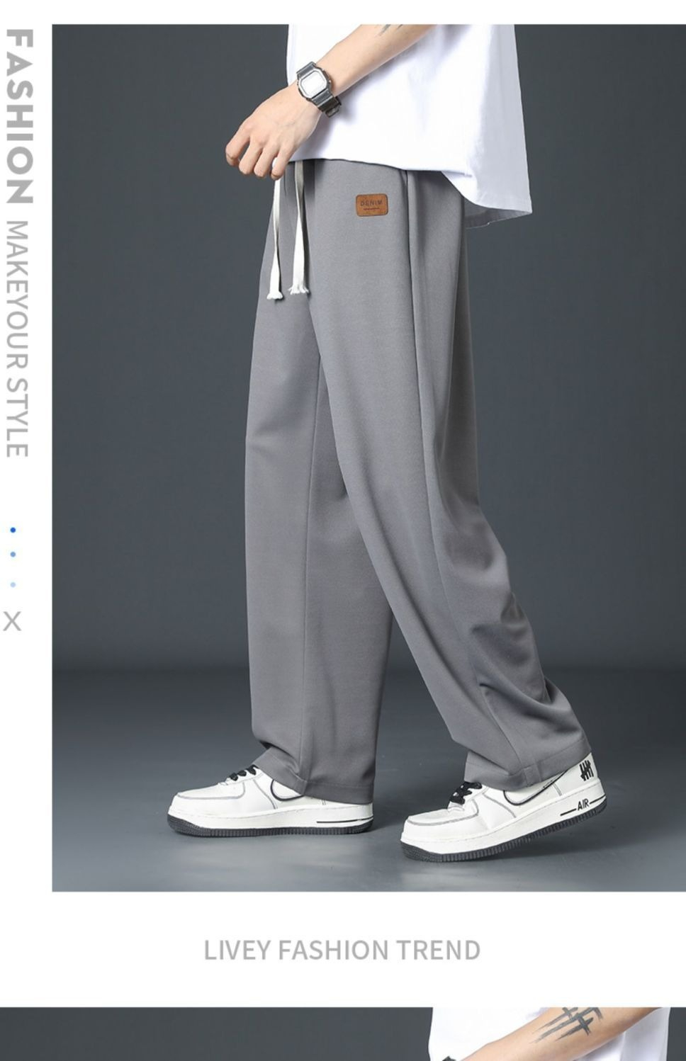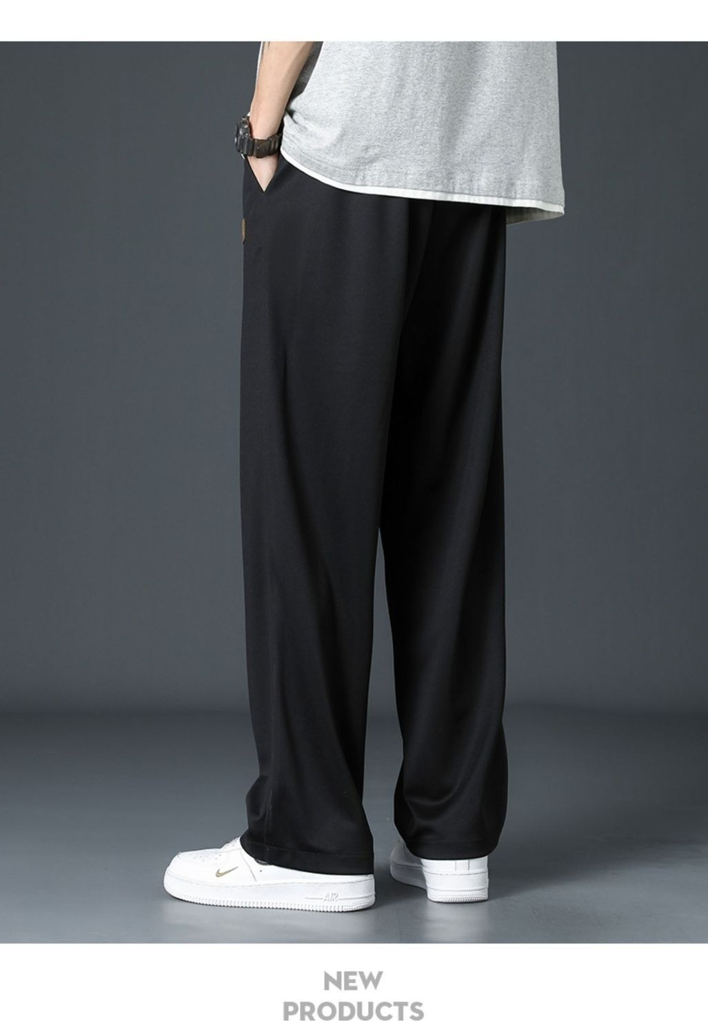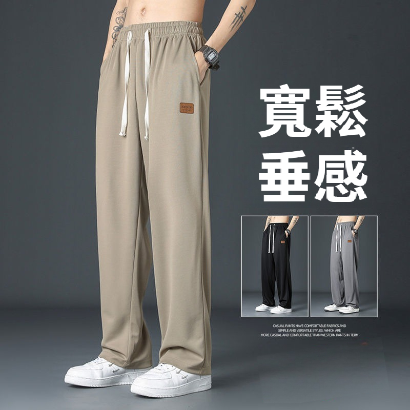 第 1 件 : 薄款速乾冰絲褲子男夏季潮流休閒長褲運動褲寬鬆垂感直筒褲闊腿褲