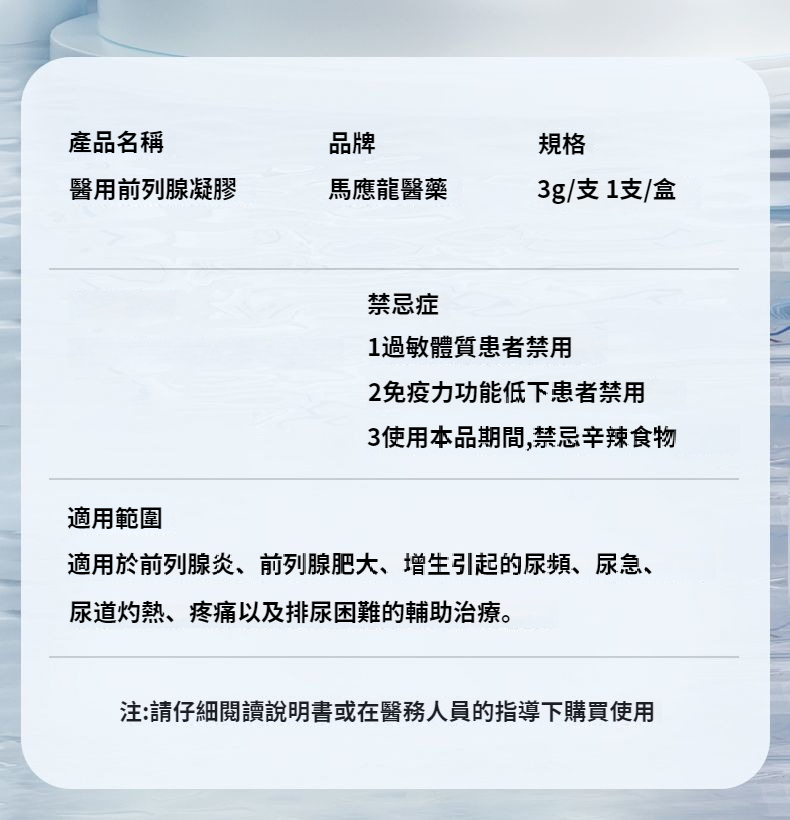醫藥醫用前列腺凝膠尿急尿道灼熱疼痛排尿困難前列腺炎