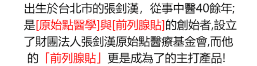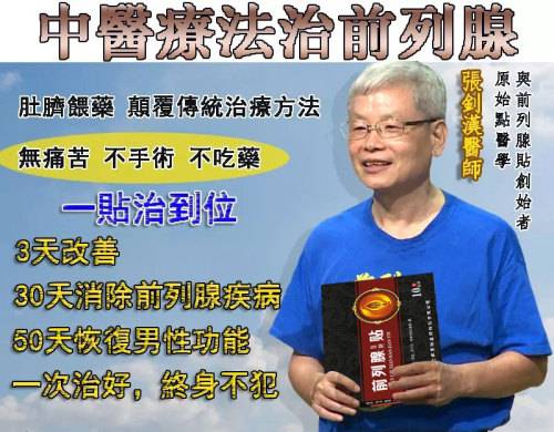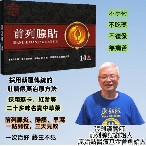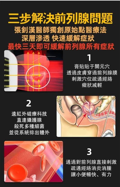 原始點醫療法創始人張釗漢醫師研製,前列腺疾病人人可被治愈,顛覆傳統治療方法 穴位敷貼,採用瑪卡、紅參等名貴中草藥製作、一貼見效、治療陽痿、早瀉、尿頻,尿急,尿痛,前列腺炎等症狀,無任何副作用,三天見效果、最快七天治愈、永不復發 NT$ 998