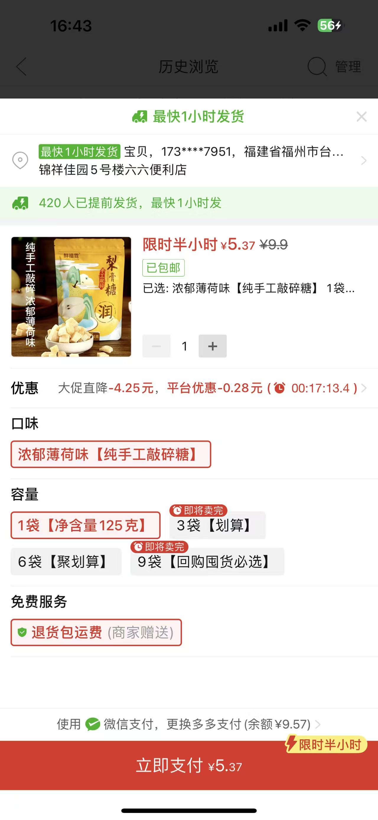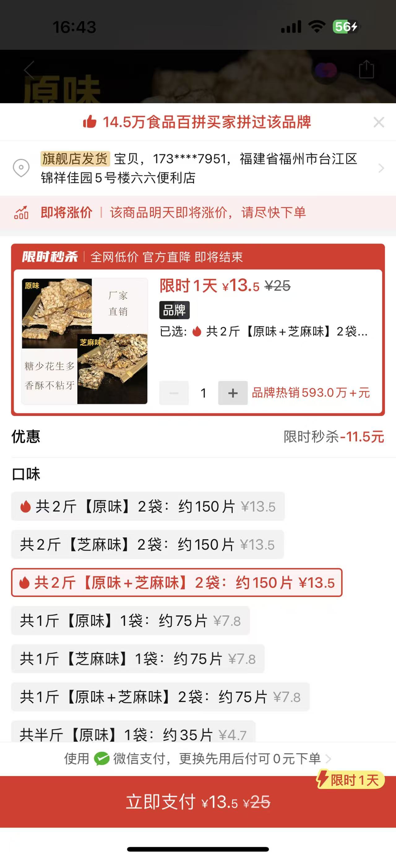 ①花生糖原味1包 芝麻味1包 ②秋梨膏糖1包
