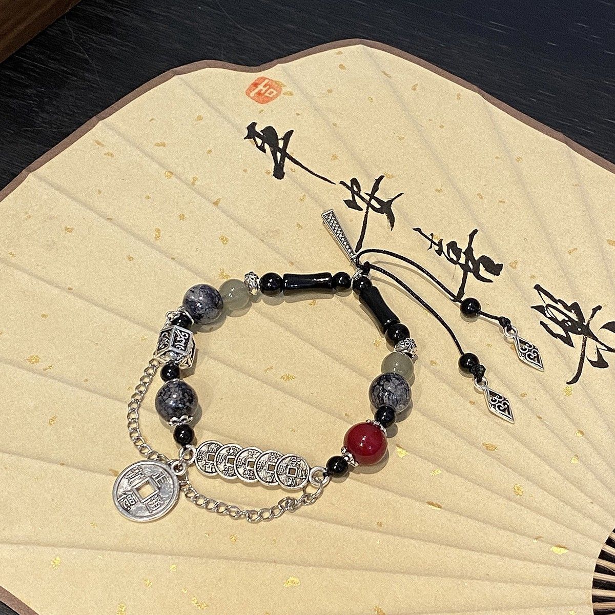 中式山鬼赤岸五路銅錢手串玻璃串珠國風設計古風閨蜜情侶手串禮物