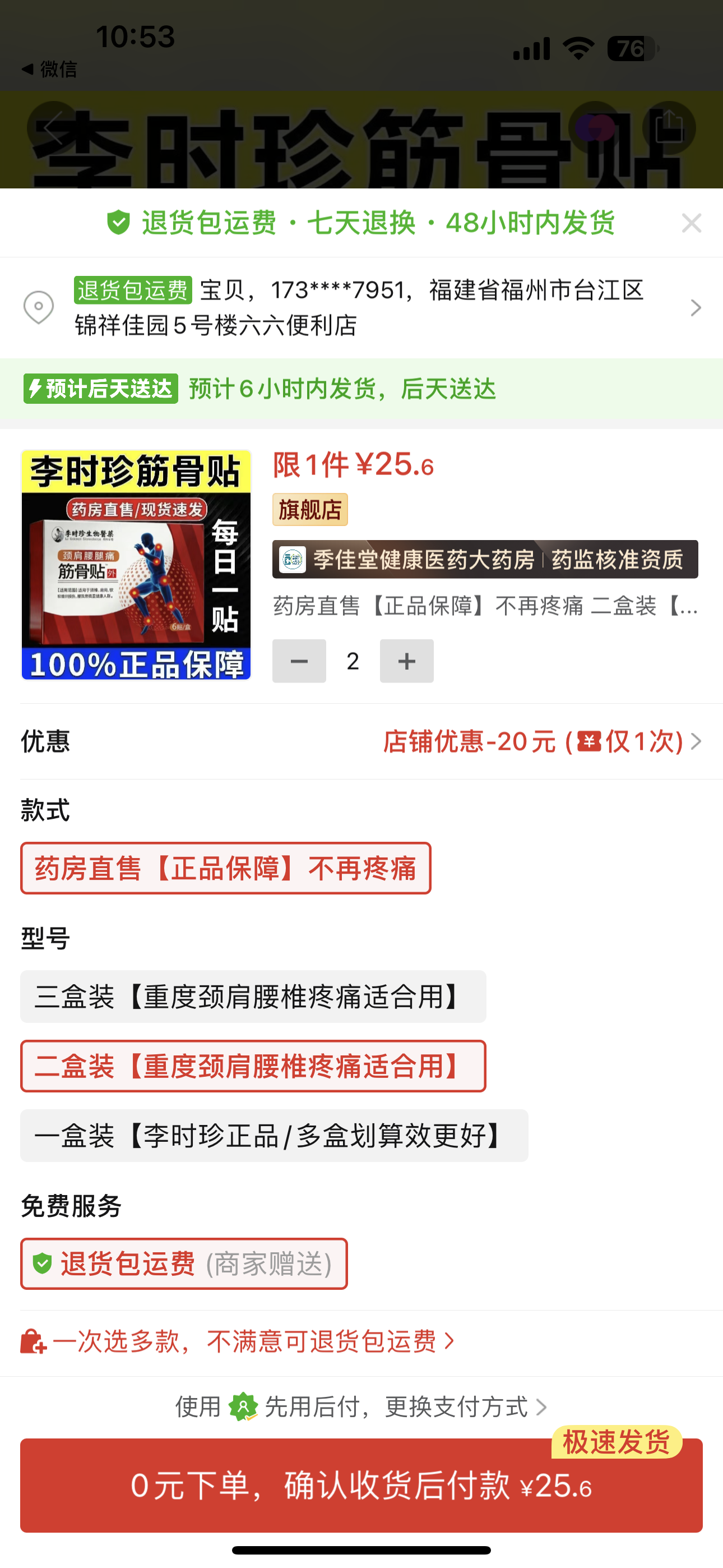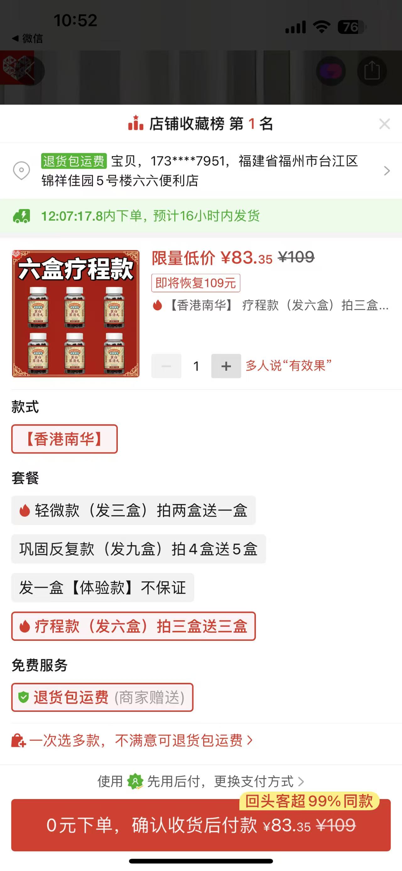 ①香港南華蛋白尿清丸6瓶+②李時珍頸肩腰腿痛筋骨貼4盒(108.95元)