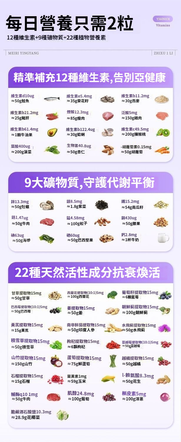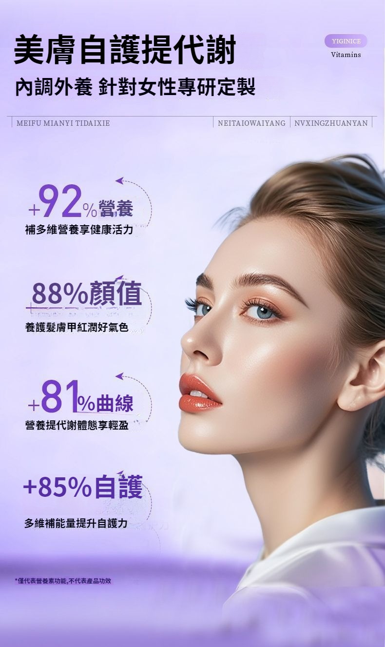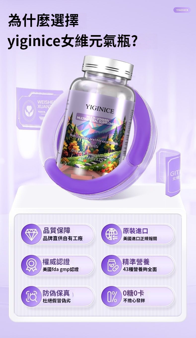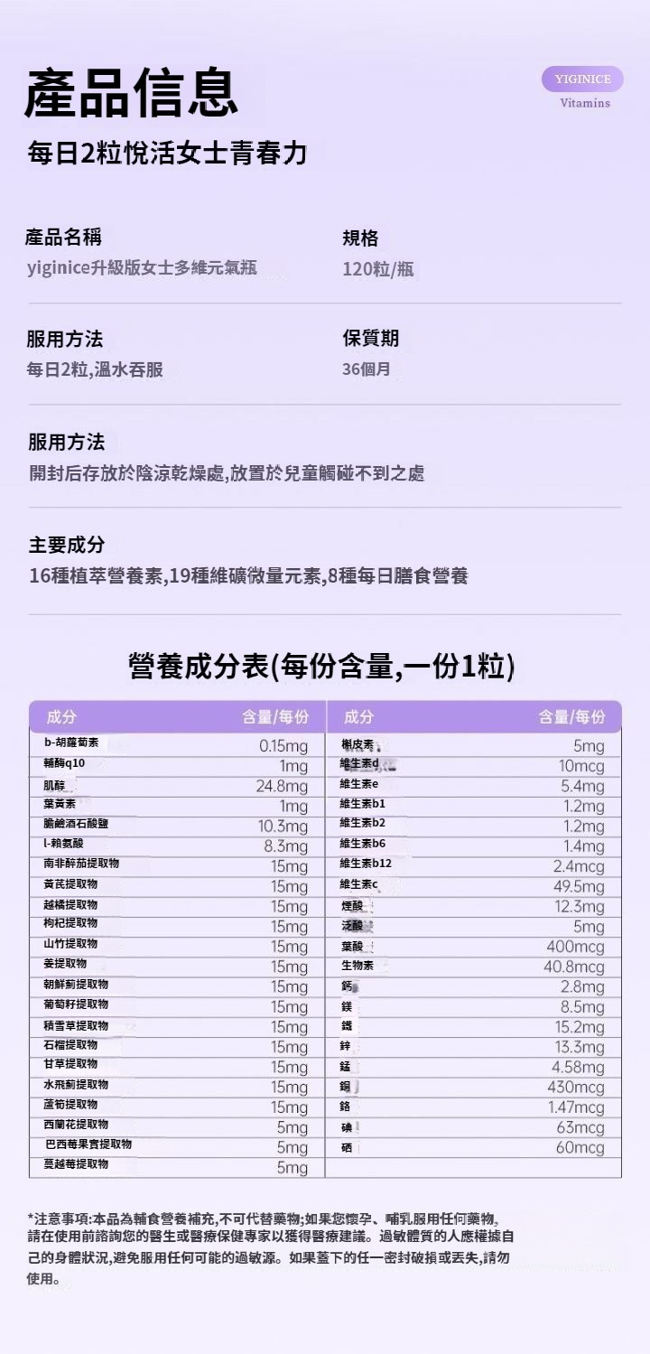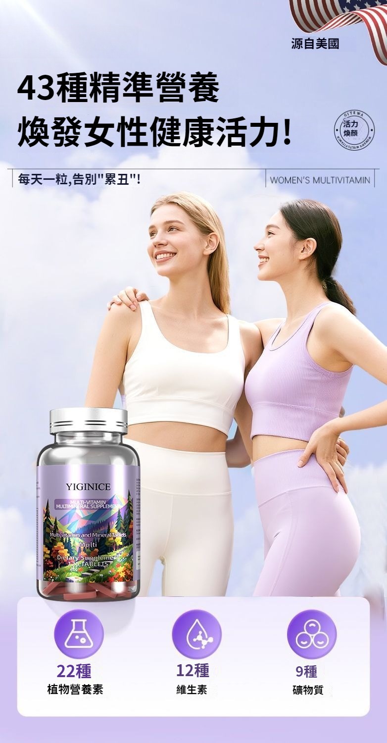 YIGINICE女士成人復合多種維生素礦物質b族維C美容養顏護美白補鋅 NT$ 1390