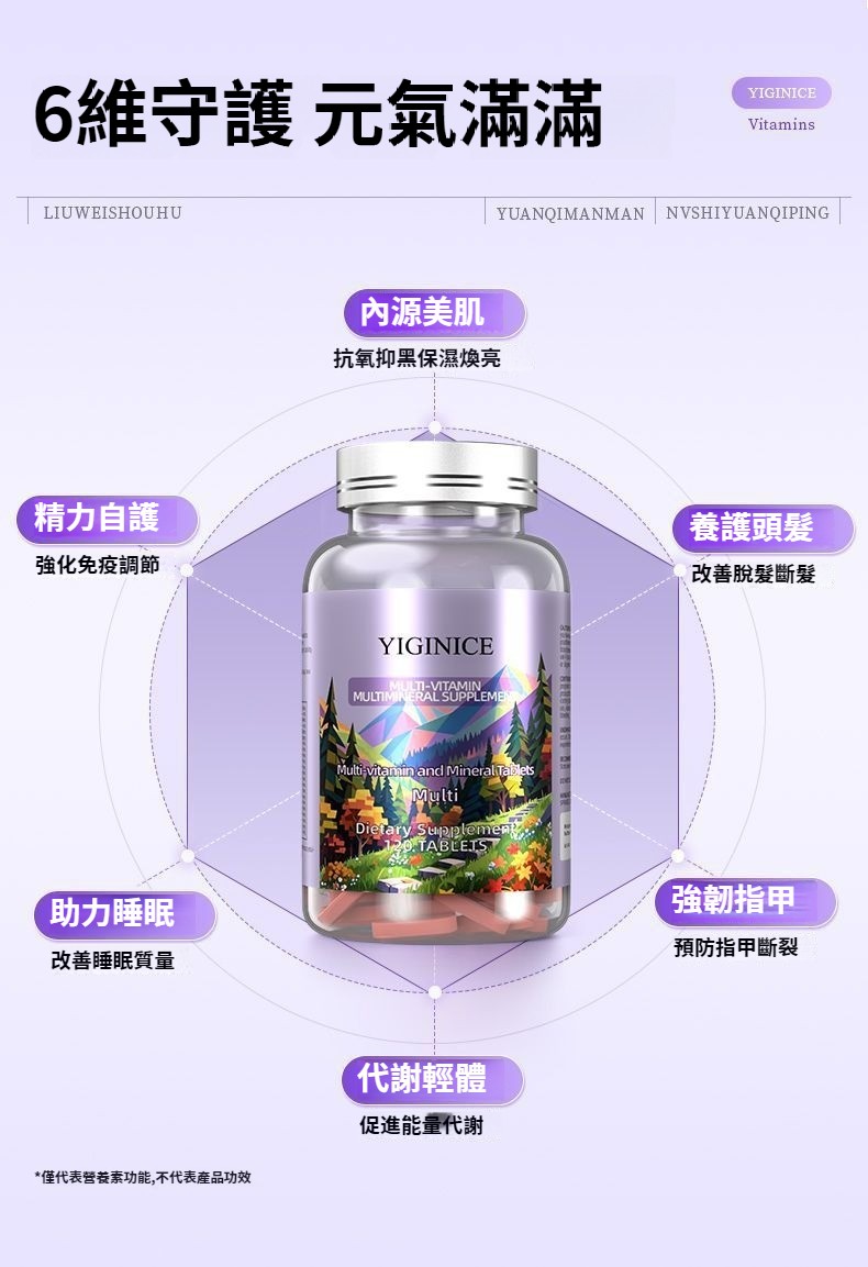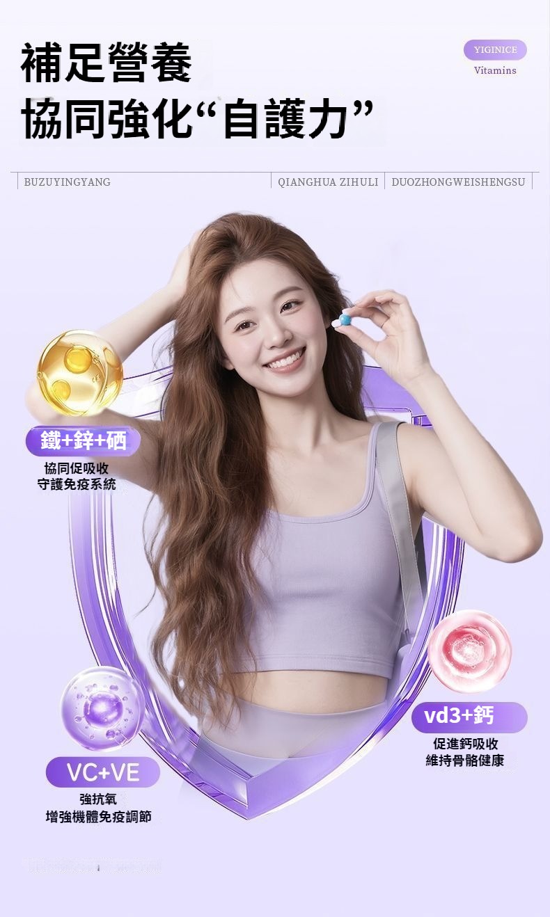 YIGINICE女士成人復合多種維生素礦物質b族維C美容養顏護美白補鋅