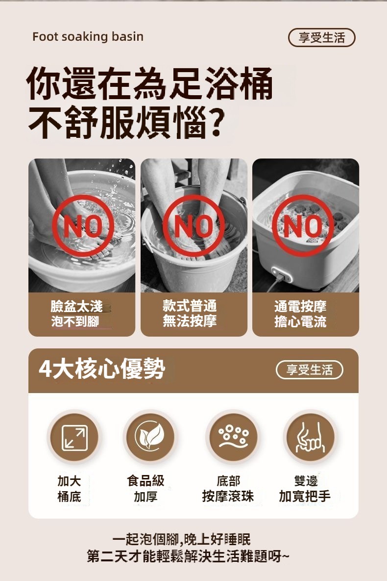 第 1 件 : 新款按摩足浴盆高級加厚加深洗腳盆家用足部按摩過腳踝大號泡腳桶