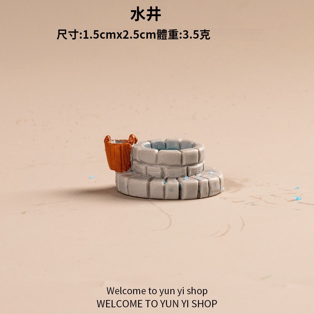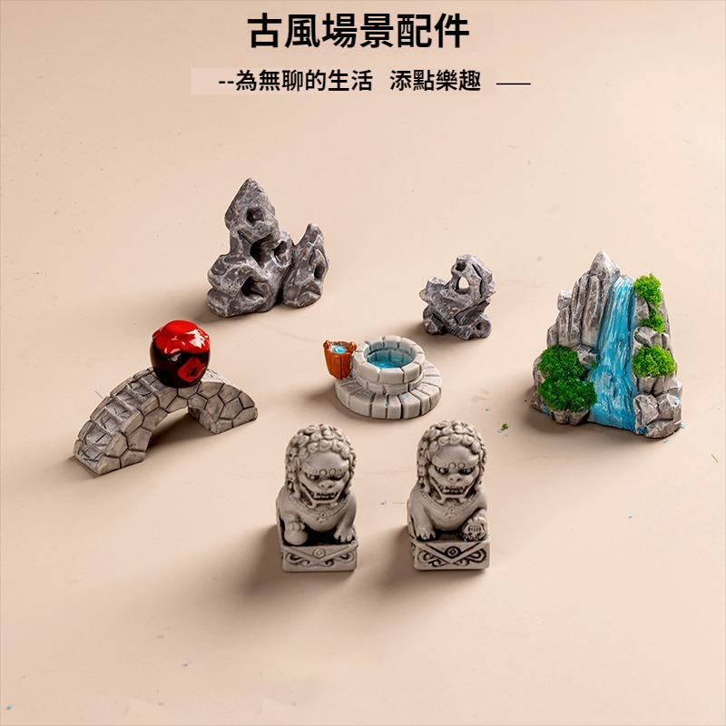 仿真中式古風懷舊場景老物件小擺飾 假山橋石獅井船屏風造景裝飾