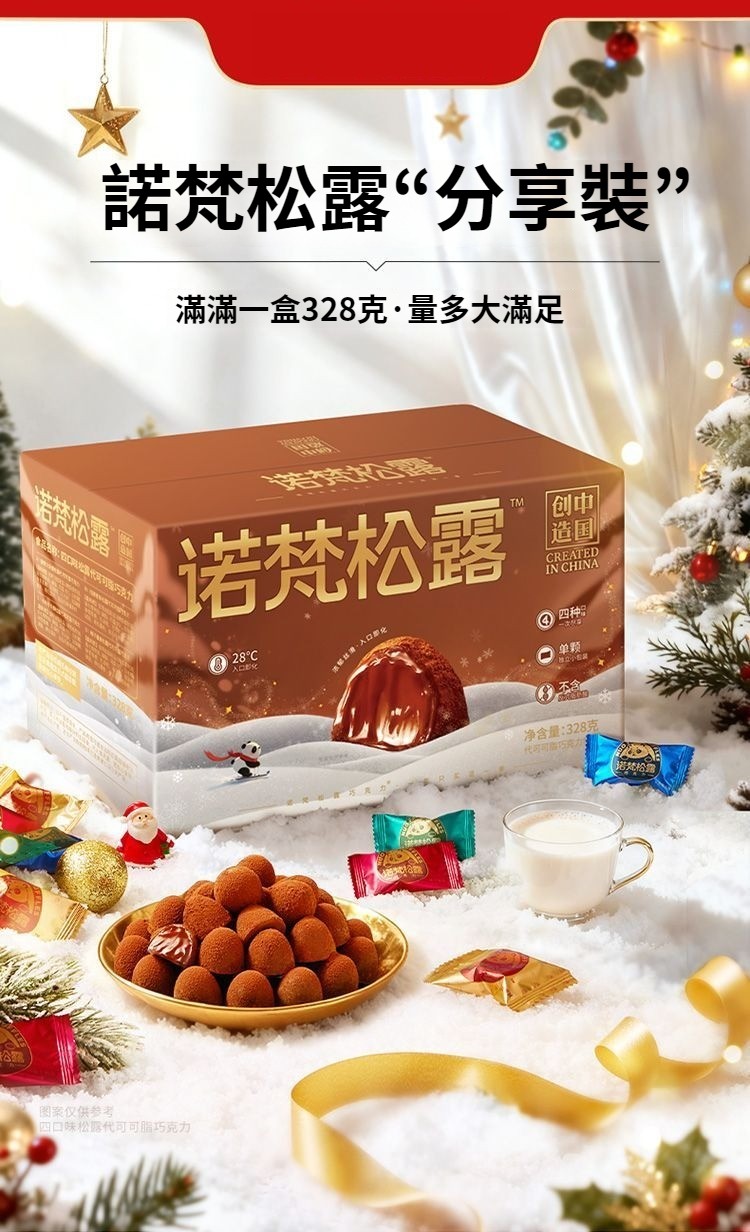 諾梵松露巧克力328g盒裝糖果高顏值年貨禮物網紅爆款送女友