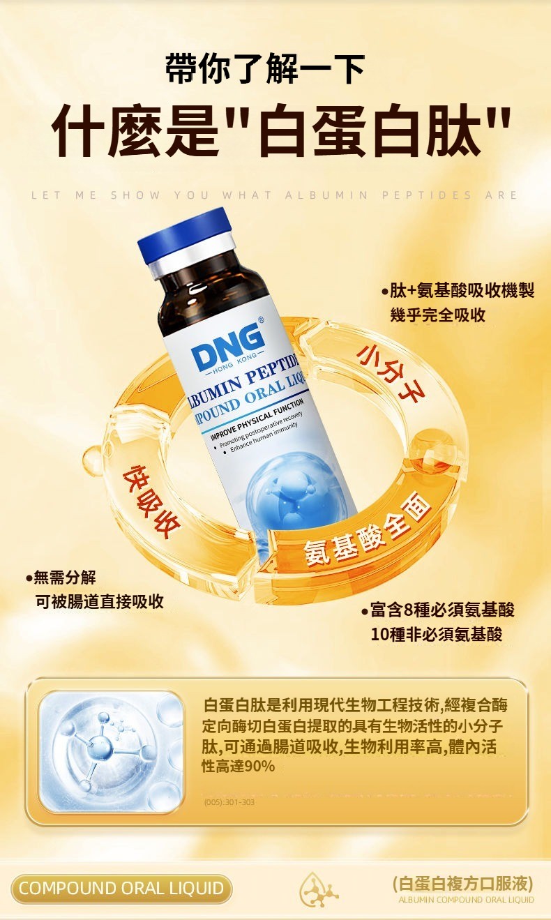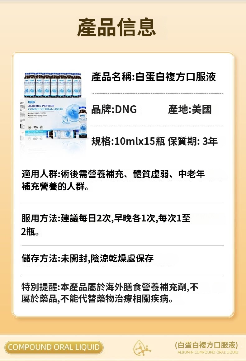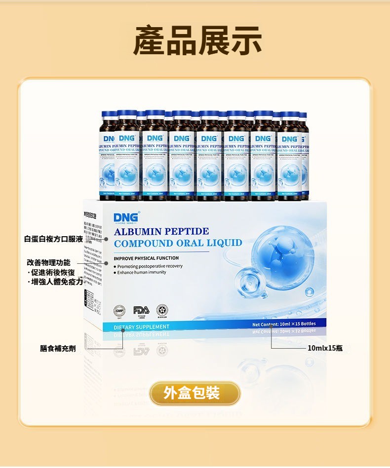 DNG進口白蛋白勝肽口服液補充營養品免疫力血紅素術後放化15瓶/盒