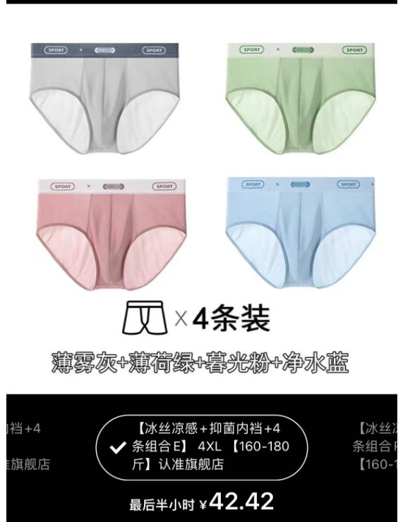 ②雅鹿三角內褲4XL 4條【灰/綠/粉/藍】