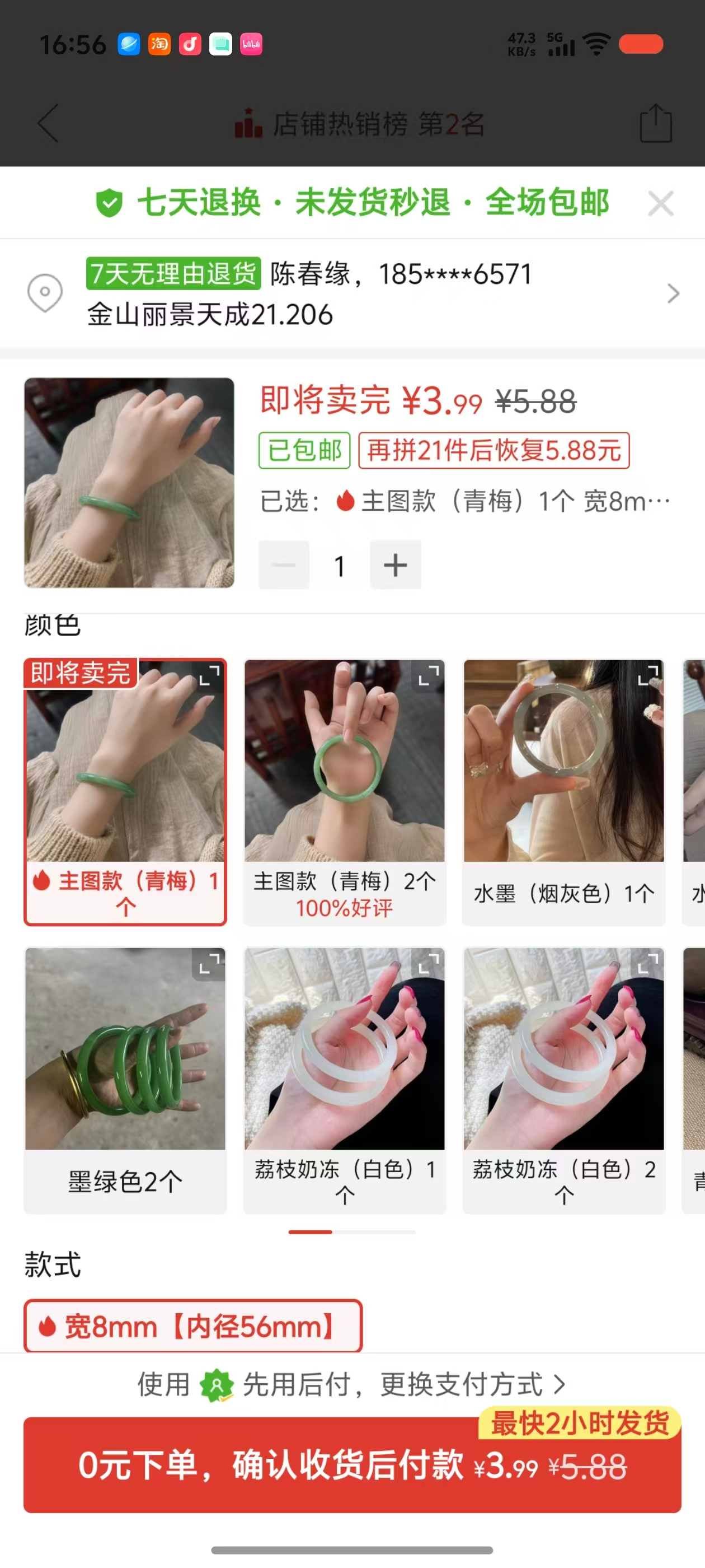 翡翠手鐲3個:12元 https://mobile.yangkeduo.com/goods.html?ps=je88A0qJgT
