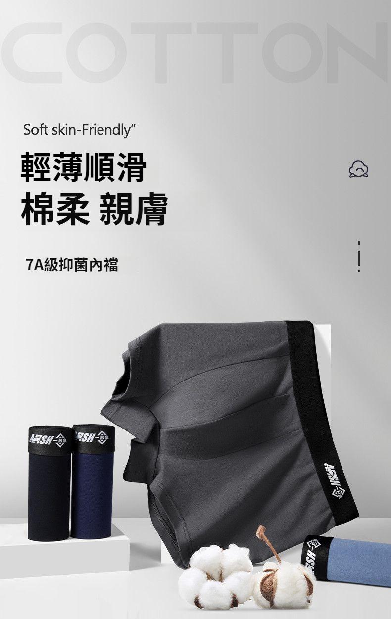 7A級抗菌純棉內褲男透氣四角短褲褲頭中腰男生莫代爾平角褲