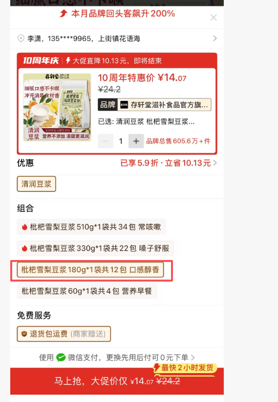 ②枇杷雪梨豆漿 1袋180g