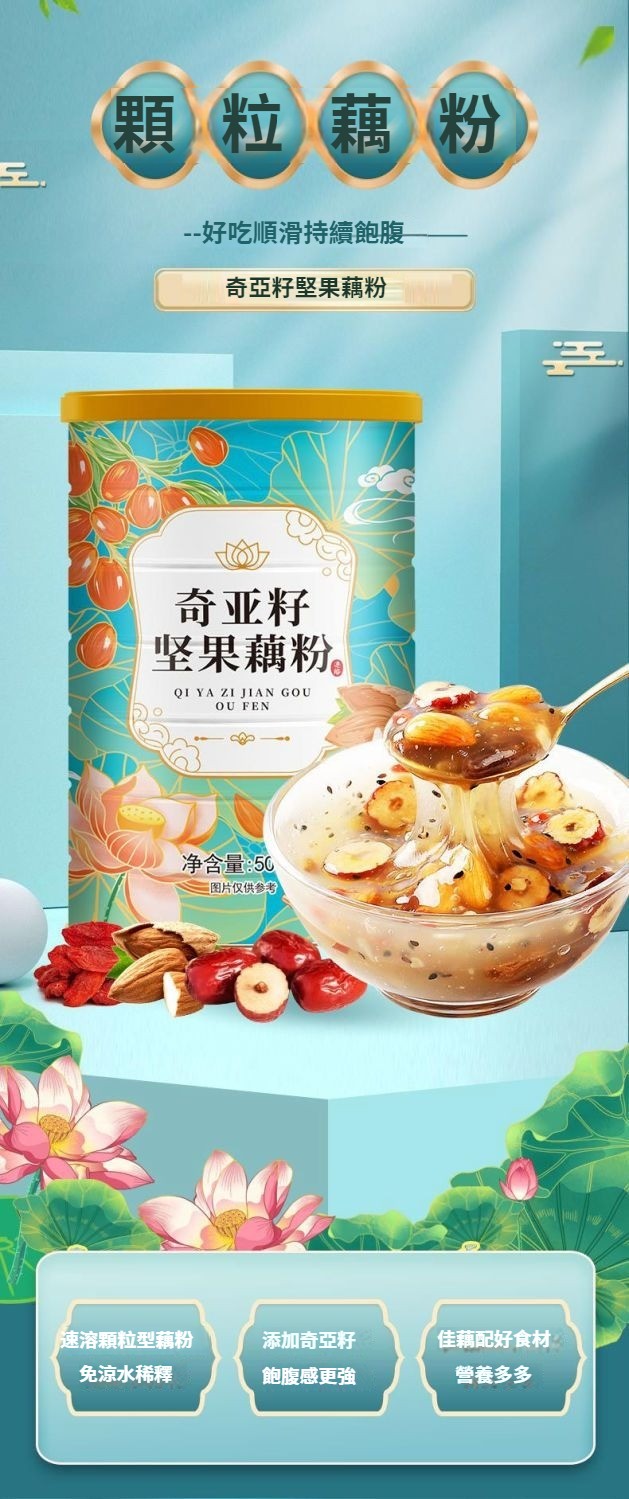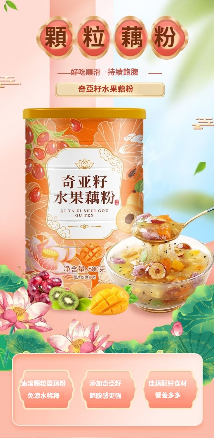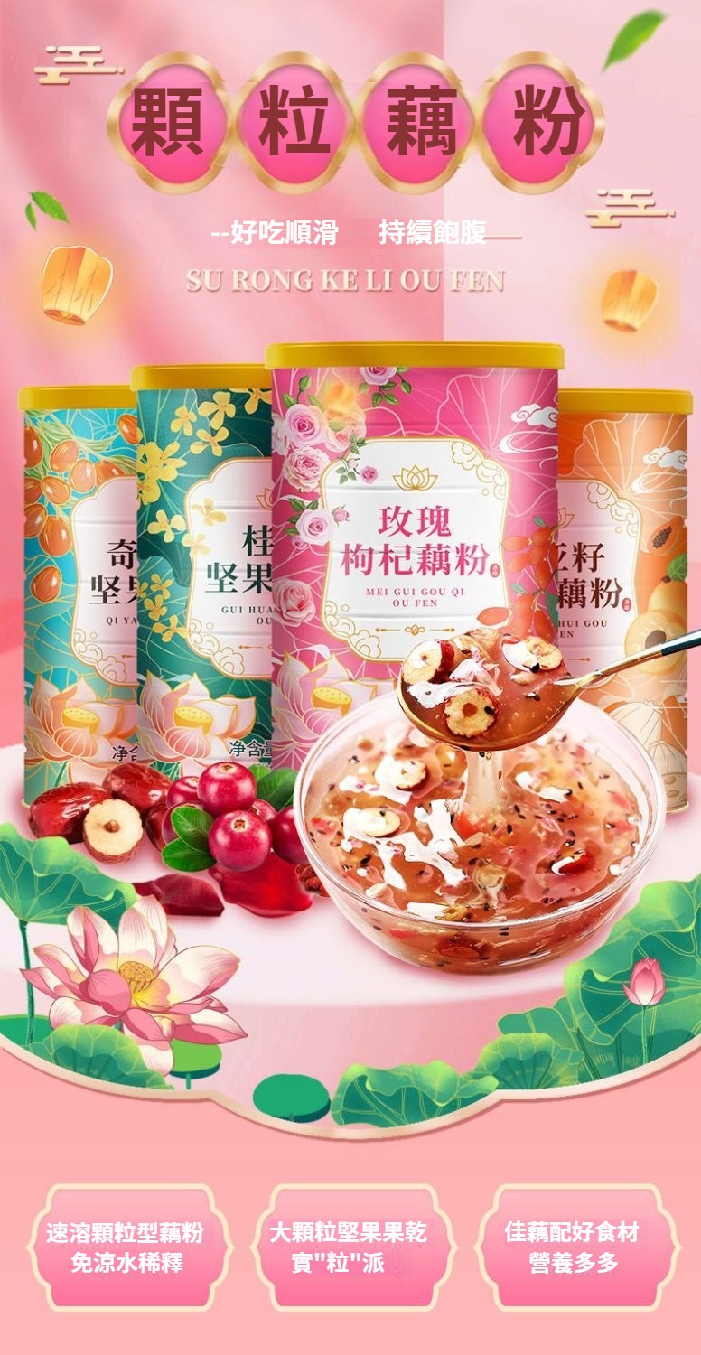 第 1 件 : 奇亞籽堅果、奇亞籽水果、桂花堅果、玫瑰枸杞藕粉500g營養早餐罐裝沖泡