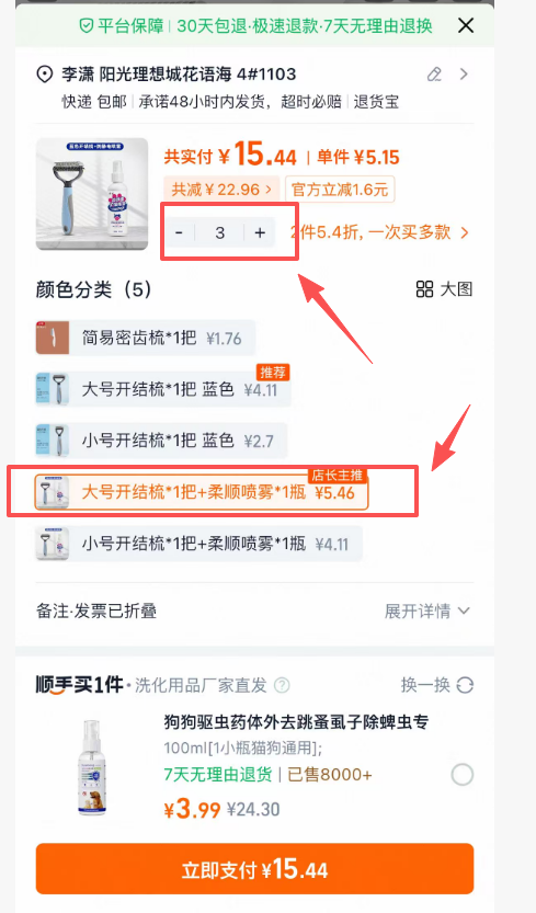 大号开节梳子 3把++柔顺喷雾 3瓶(下单拍3份就可以了)