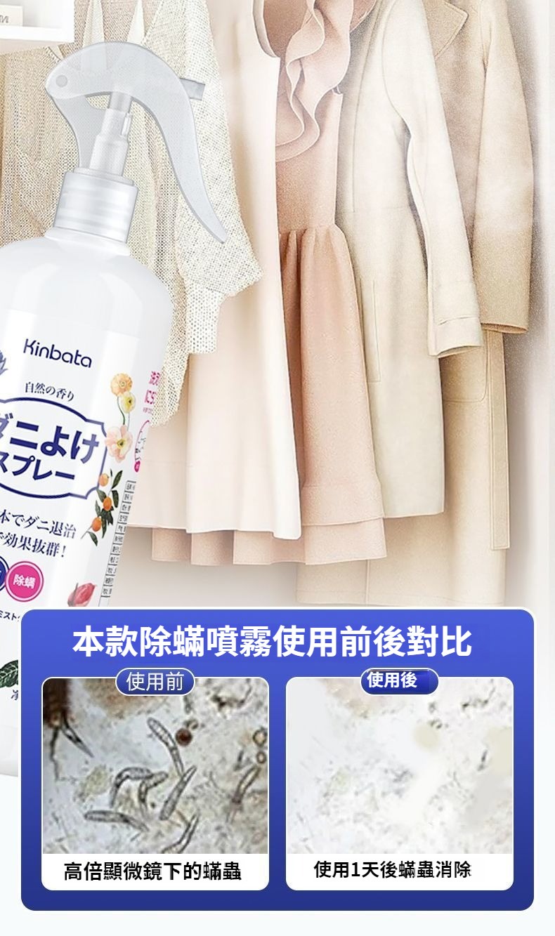 日本Kinbata除蟎噴霧家用學生宿舍床上免洗免曬殺菌除蟎殺蟎神器