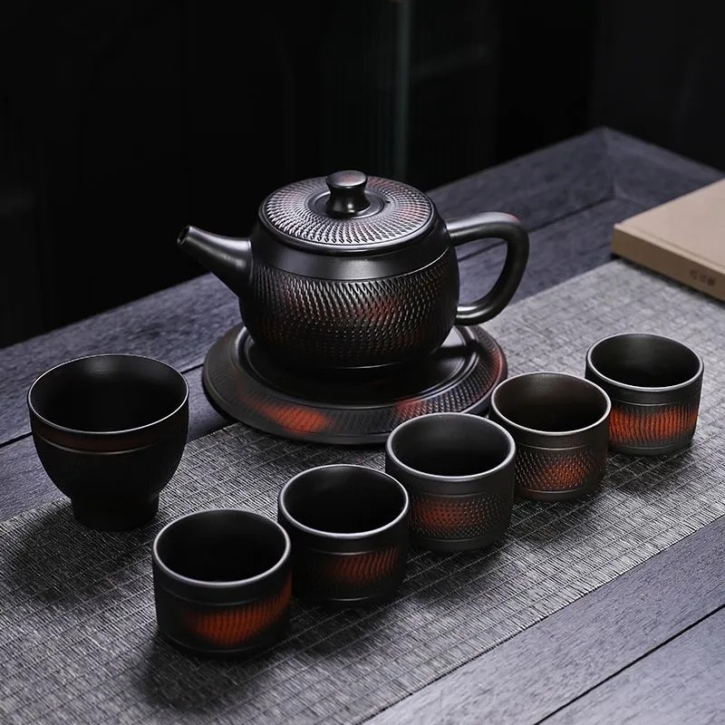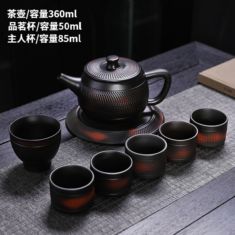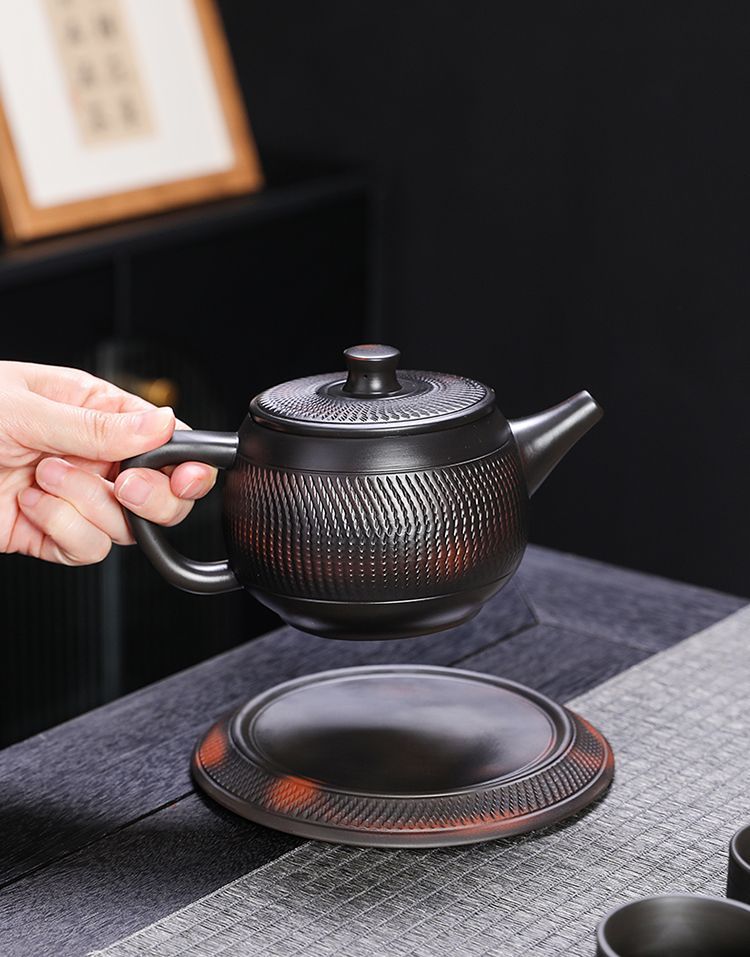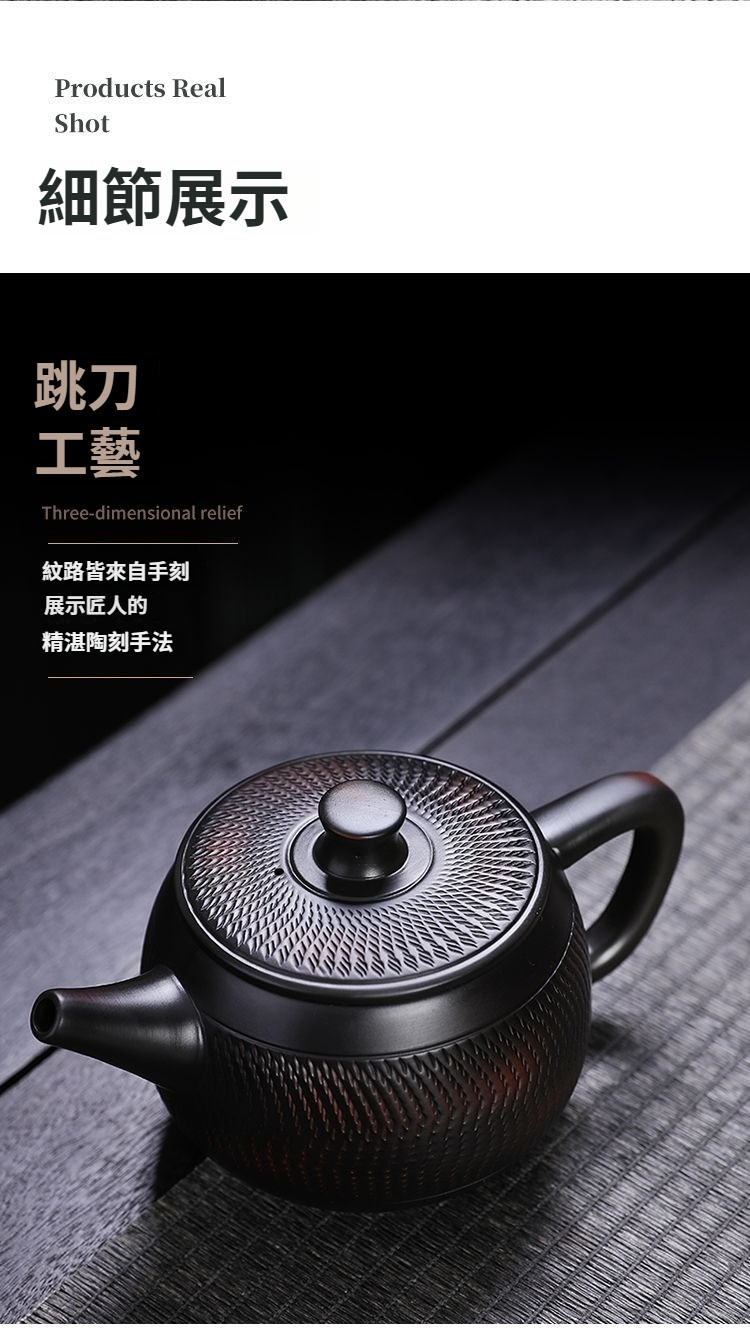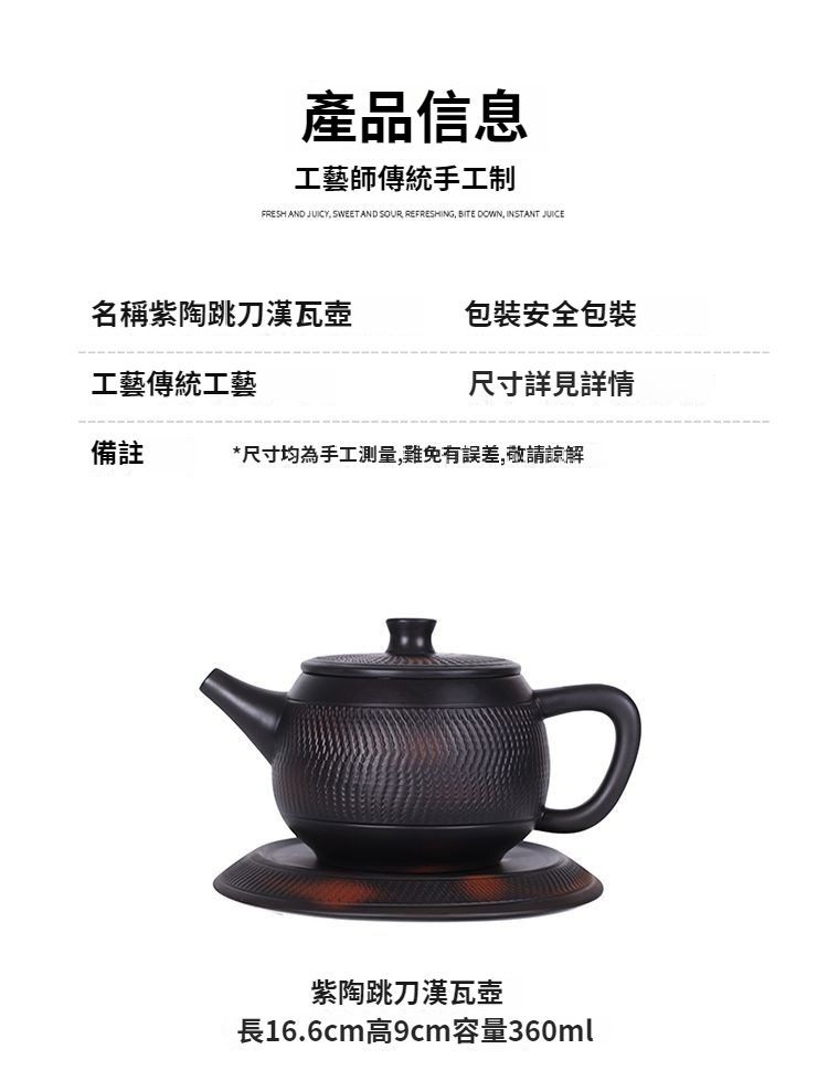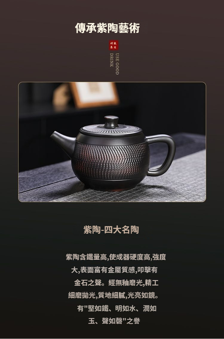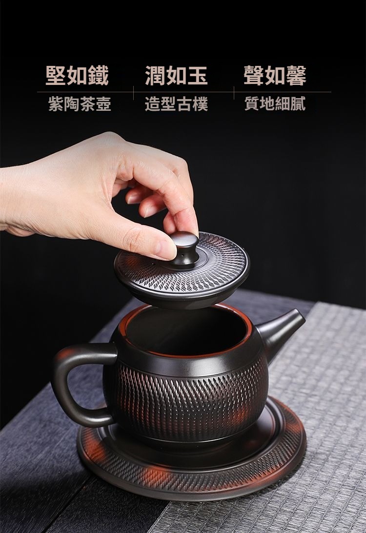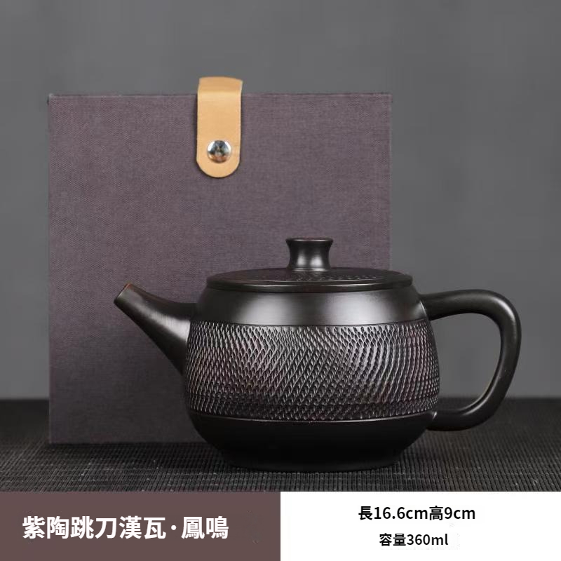 紫陶鳳鳴壺手工傳統工藝跳刀漢瓦壺大容量茶壺高檔家用茶具套裝 NT$ 1199