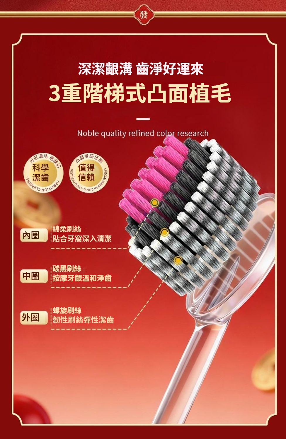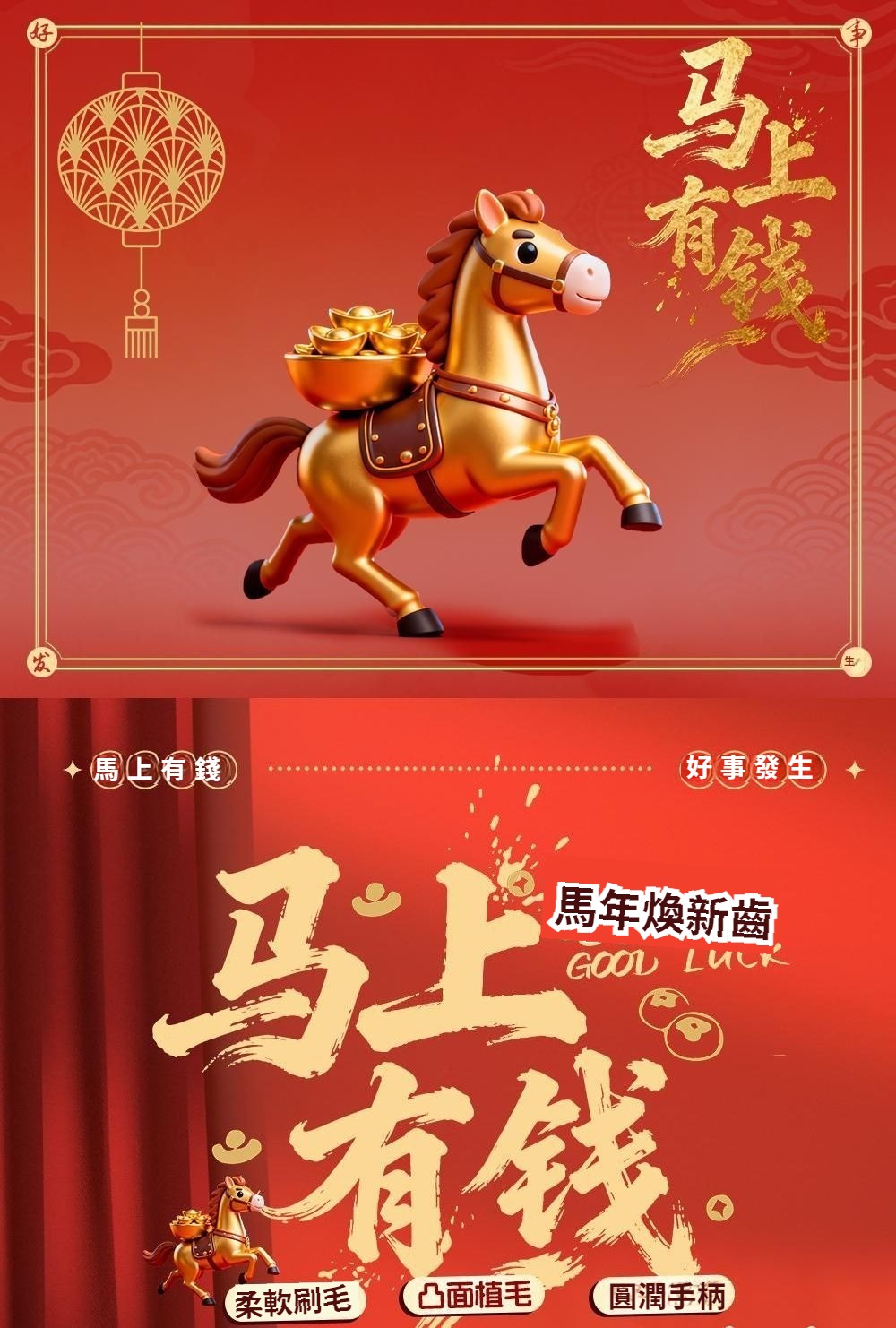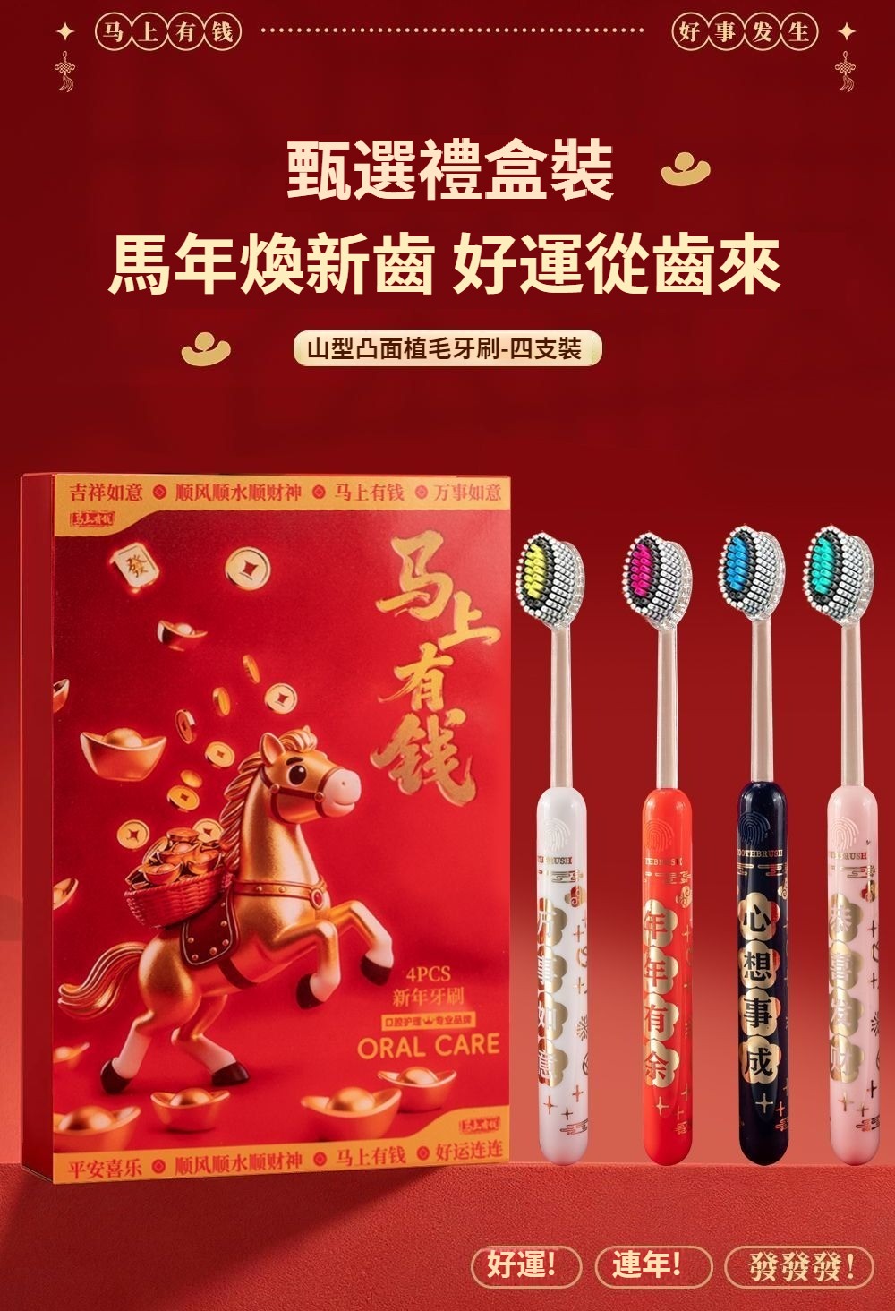 馬年禮盒裝好運牙刷新款牙刷成人家用結婚牙刷凸面山形牙刷家庭裝