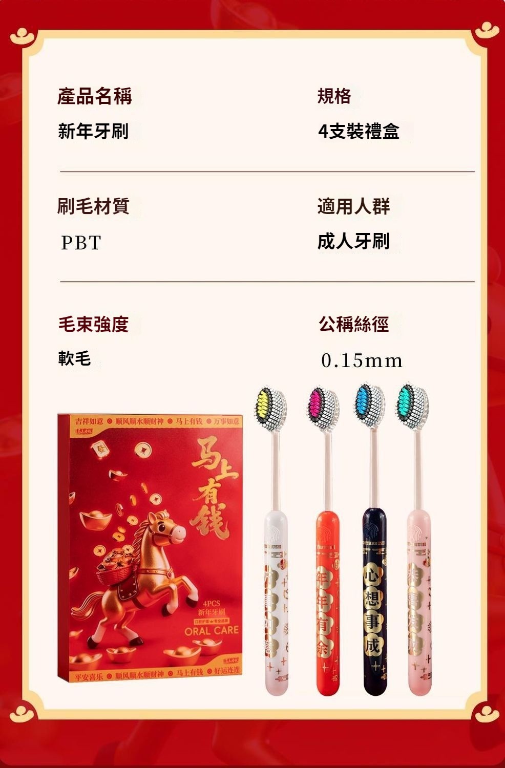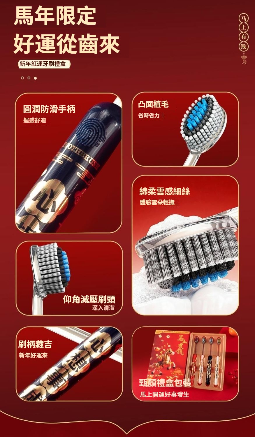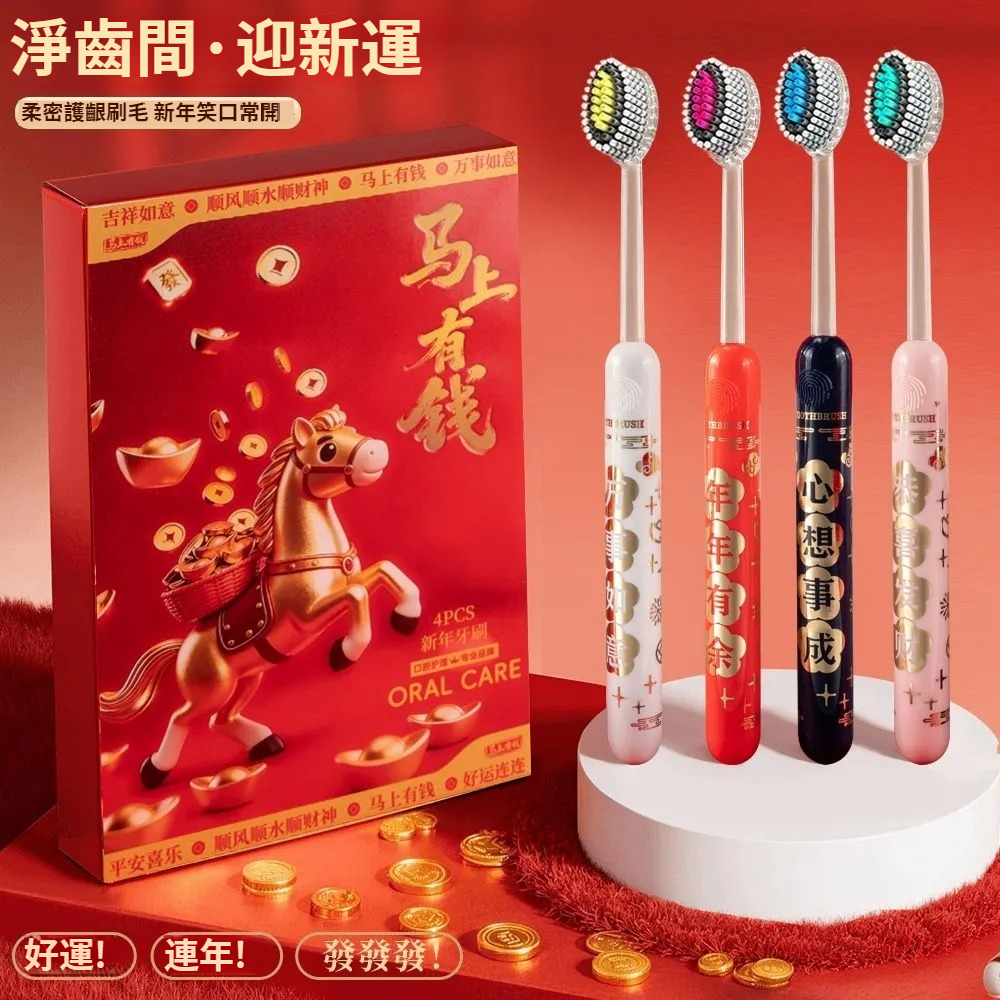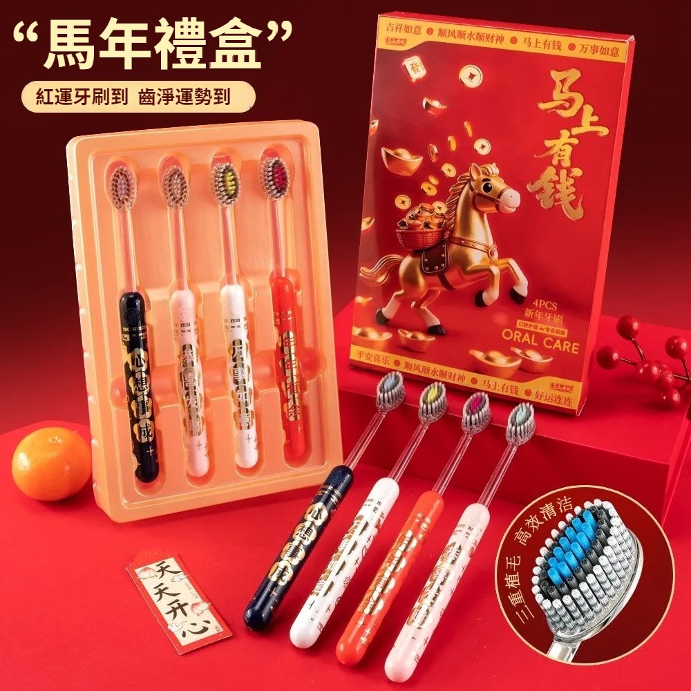 馬年禮盒裝好運牙刷新款牙刷成人家用結婚牙刷凸面山形牙刷家庭裝 NT$ 799
