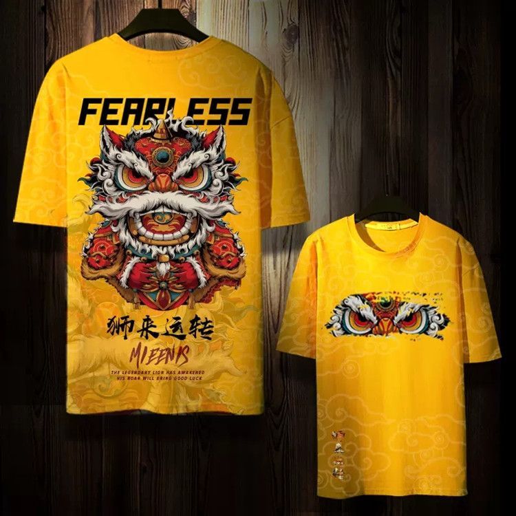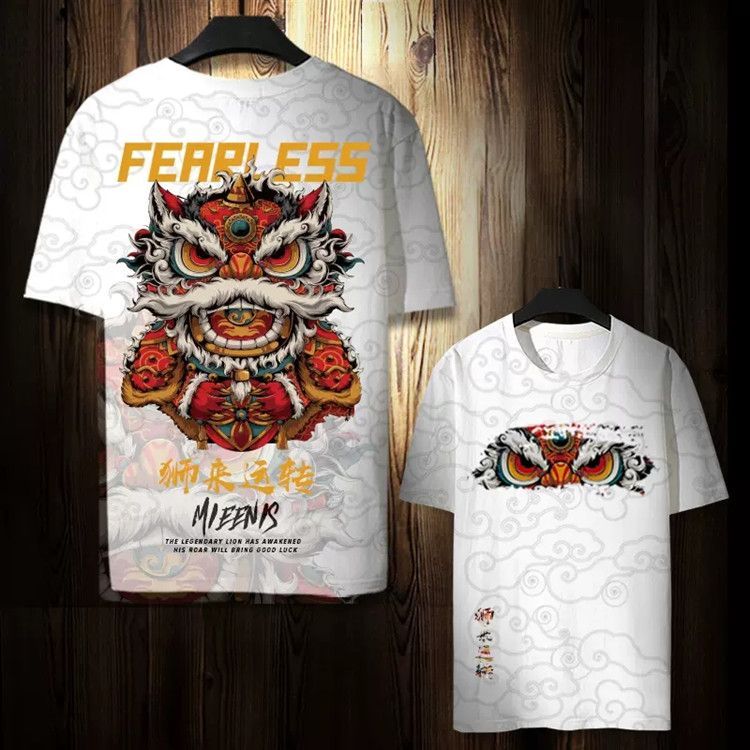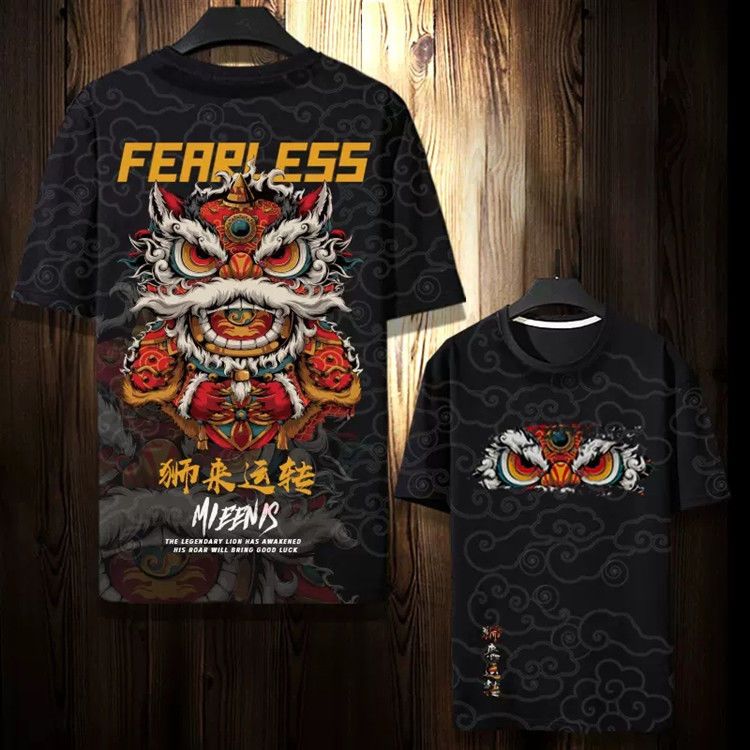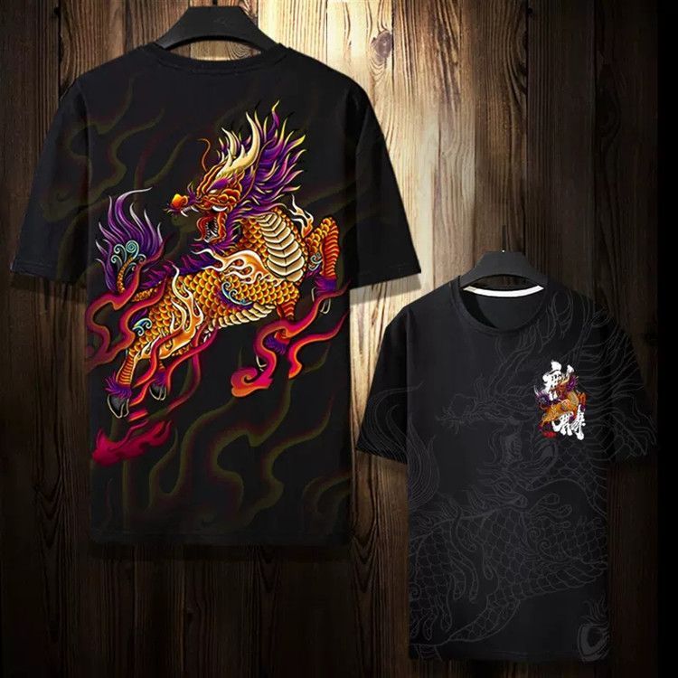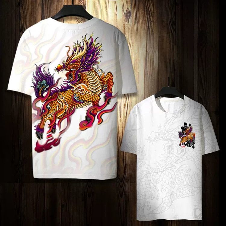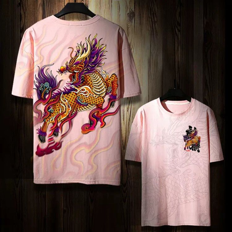 第 5 件 : 潮牌麒麟T卹個性短袖夏季男小眾T卹寬鬆國風半袖潮流