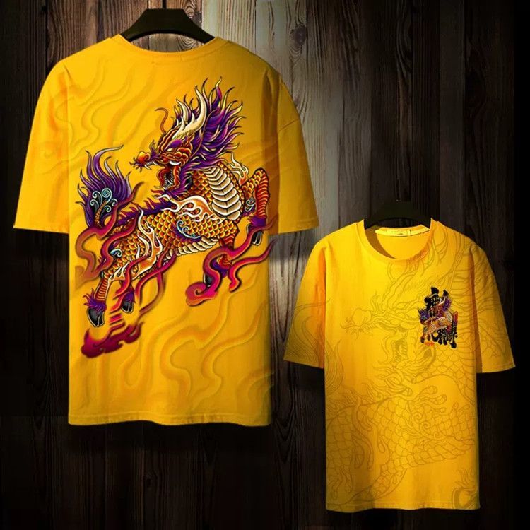 第 6 件 : 潮牌麒麟T卹個性短袖夏季男小眾T卹寬鬆國風半袖潮流