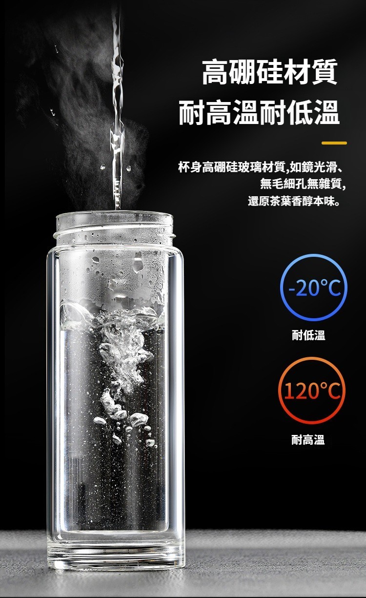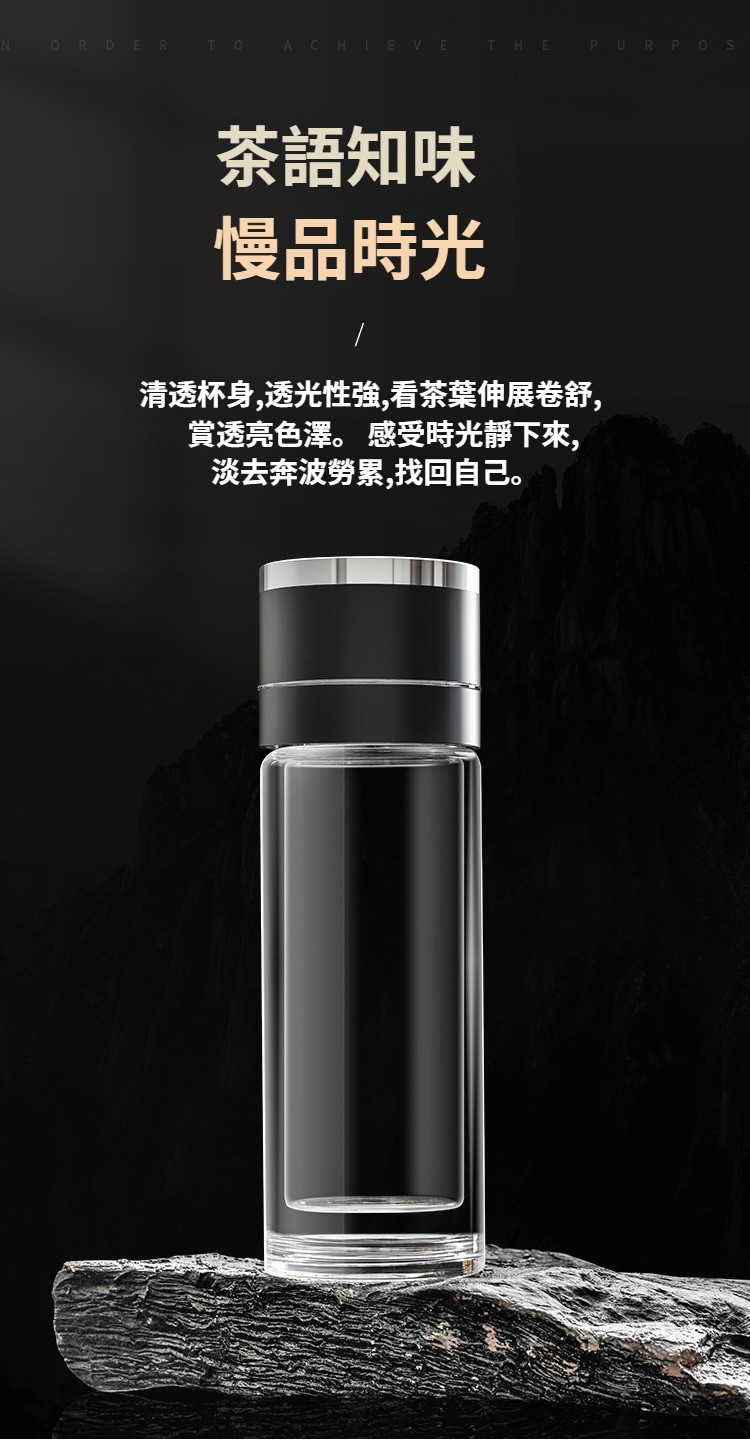 一鍵開蓋茶水分離杯,車載便攜水杯高硼硅雙層玻璃杯耐高溫泡茶杯子