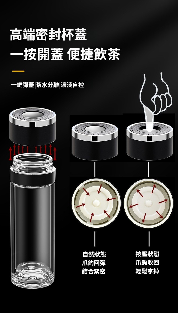 第 3 件 : 一鍵開蓋茶水分離杯車載便攜水杯高硼硅雙層玻璃杯耐高溫泡茶杯子