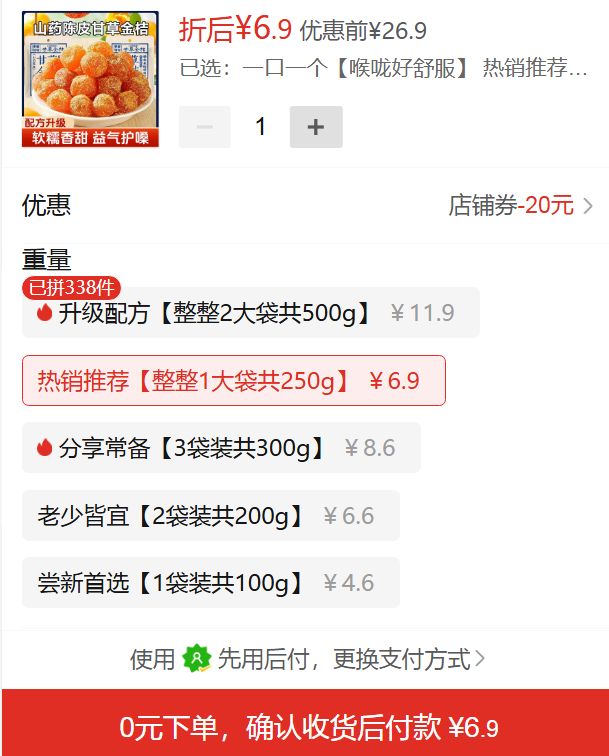 山藥陳皮甘草金桔1袋 250g, 採購價:6.9元