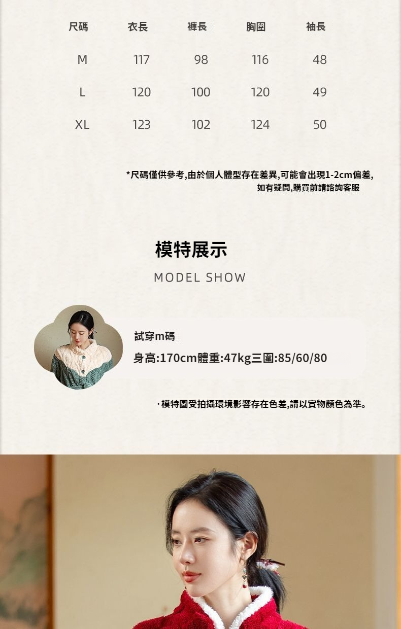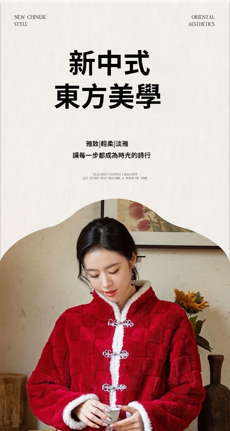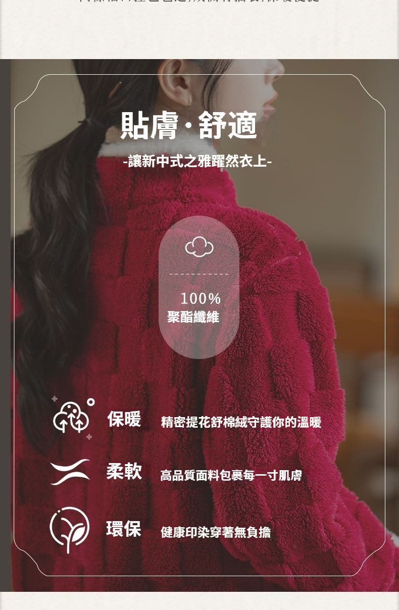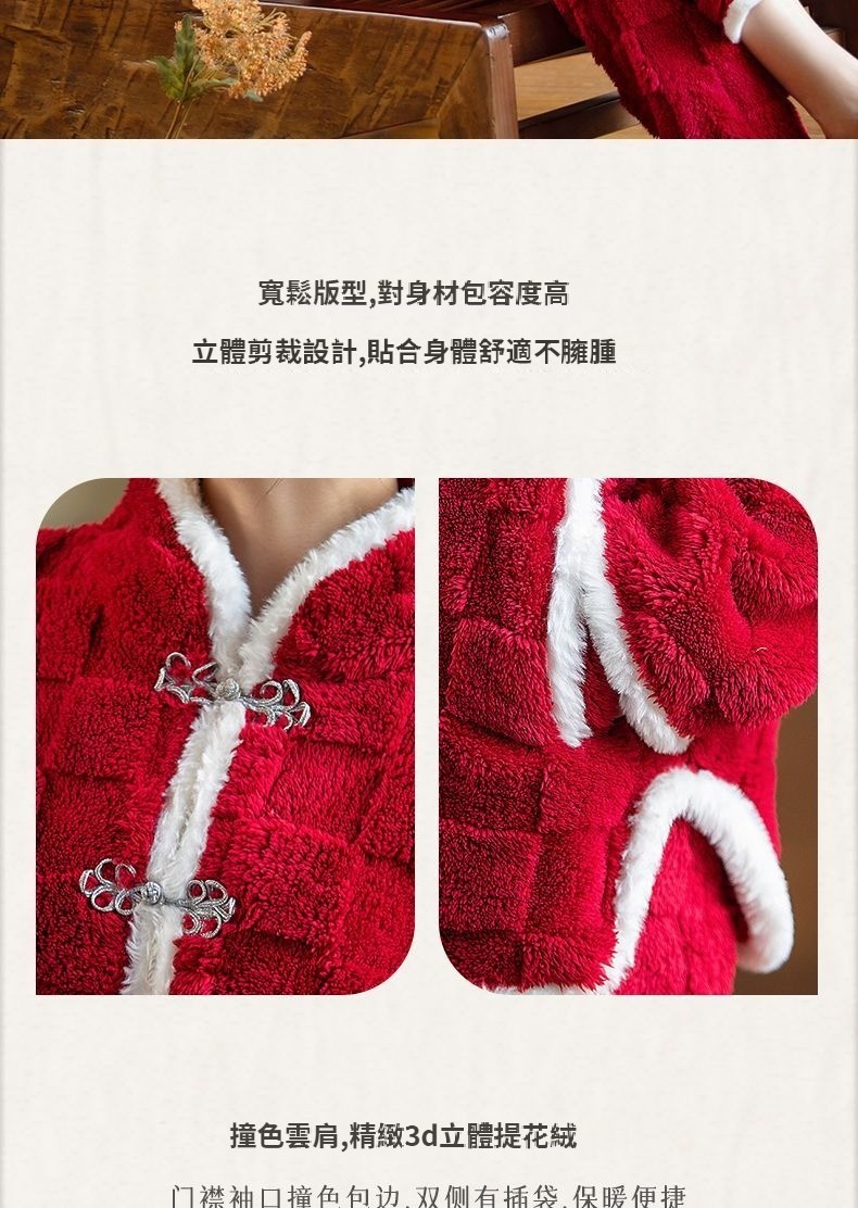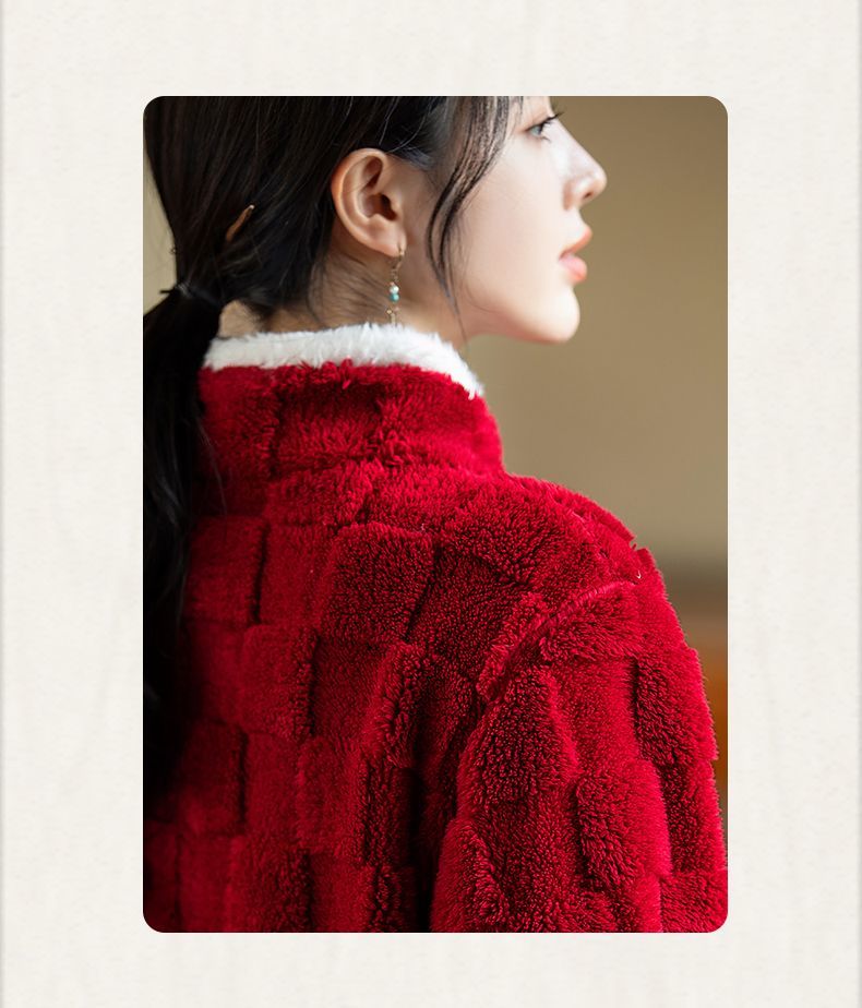 第 2 件 : 紅色新中式國風冬季珊瑚絨加厚加絨睡衣套裝可外穿家居服