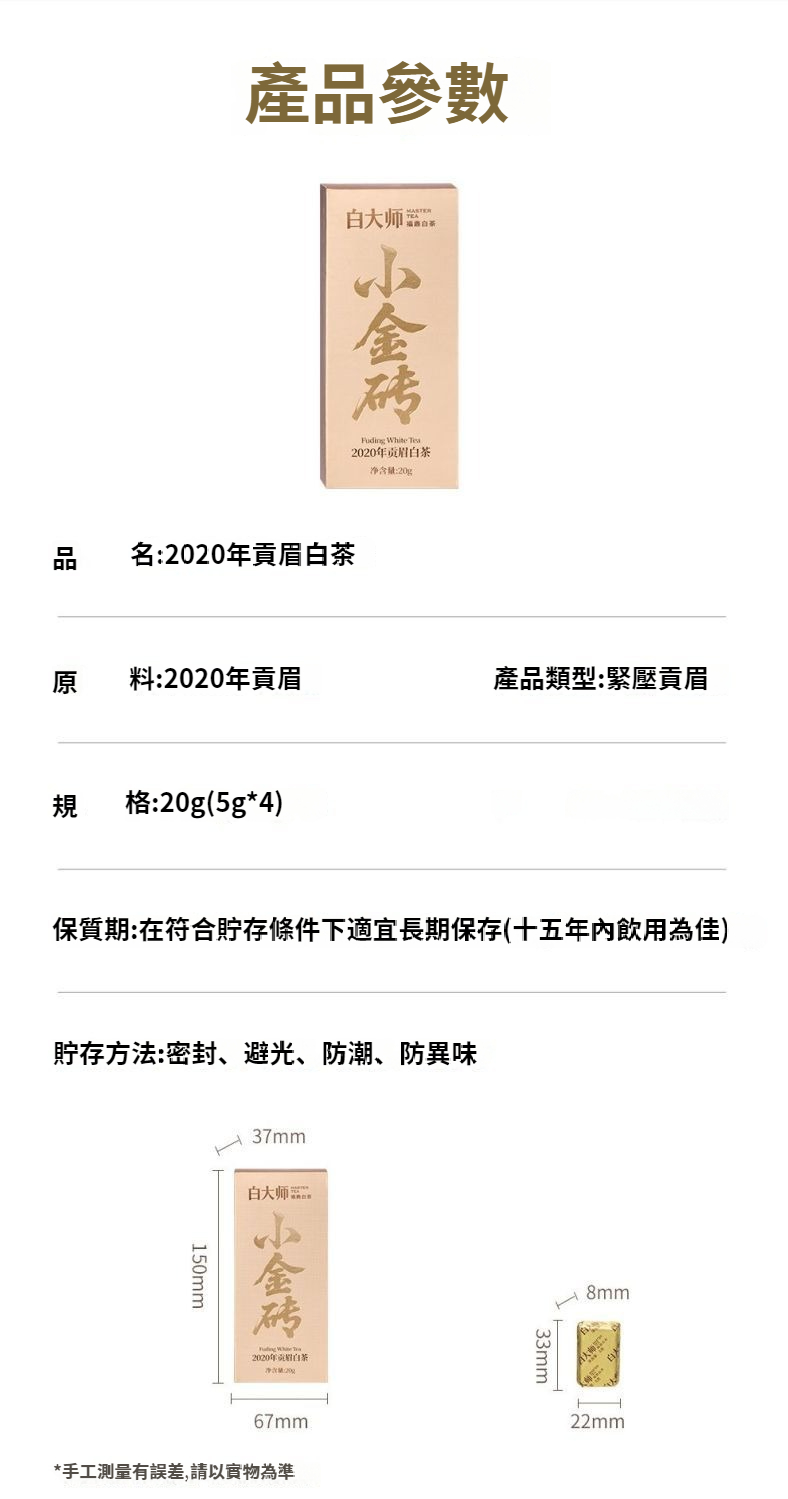 高山2020年一級貢眉白茶金磚白茶20g共4泡 NT$ 999