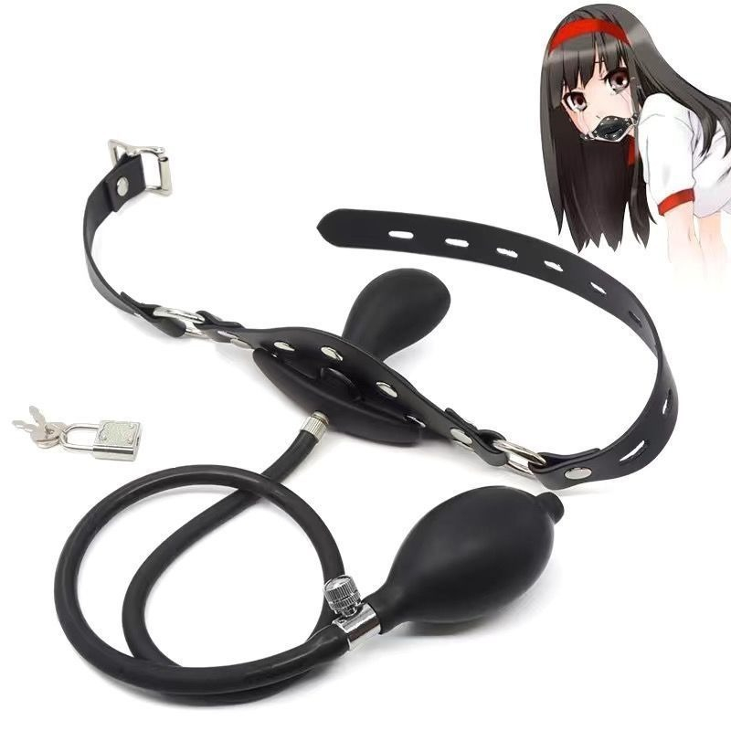新款液態硅膠充氣口塞枷鎖調情玩具SM另類口塞束縛調教情趣用品