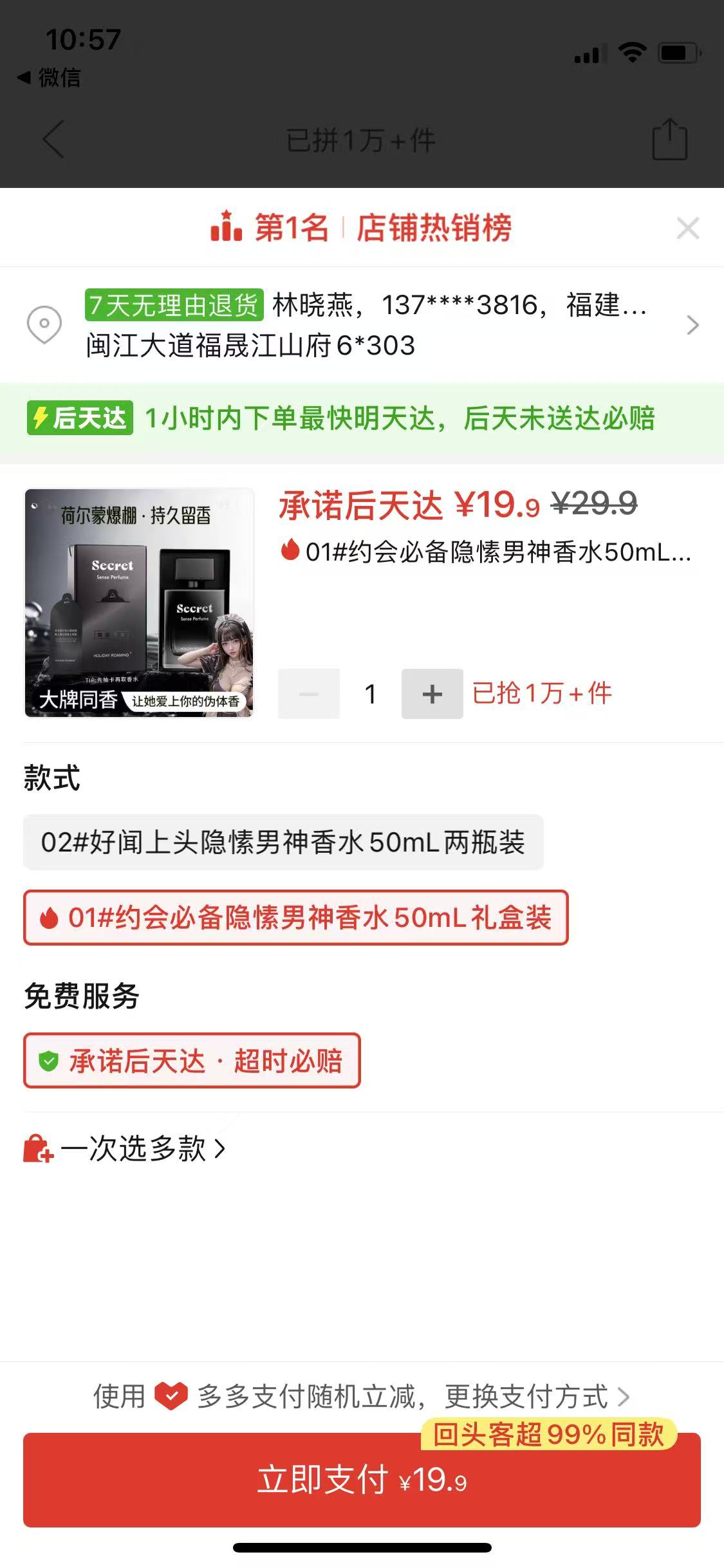 ①香水1瓶19.9元:https://mobile.yangkeduo.com/goods.html?ps=Eo0uCj84iz