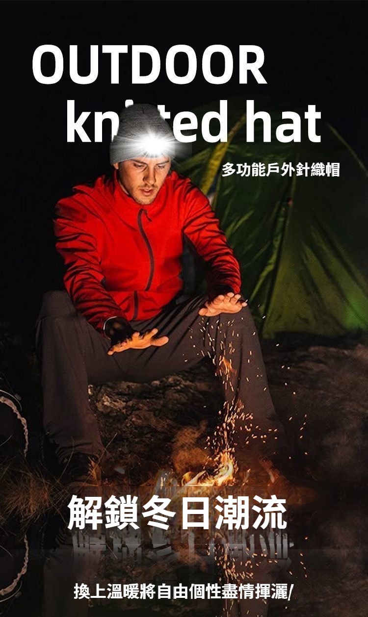 第 5 件 : 【冬日發光體 | 可拆式LED頭燈針織帽】 一頭溫暖,一頭照亮,讓每個夜晚的腳步踏實生光。 ▸ 加厚針織帽身鎖住溫度,緊貼頭型不勒不鬆。 ▸ 帽簷內建可拆式LED燈條,三檔調光 ▸ 燈條獨立充電,USB接口,取下可作手電筒、帳篷燈。 照亮你那些需要光的時刻 · 夜跑/遛狗時,解放雙手,眼前一路明亮 · 清晨趕班/騎行,在昏暗街頭做自己的燈塔 · 露營、戶外檢修,燈光隨頭轉動,指哪照哪 · 深夜歸家,鑰匙找鎖孔不再摸黑 願你的冬天,既暖,又亮。
