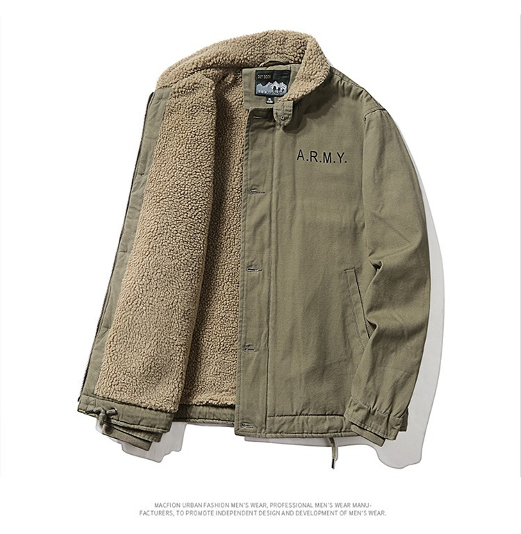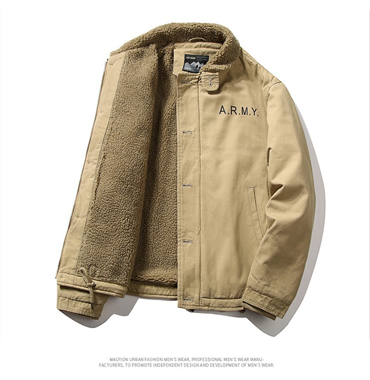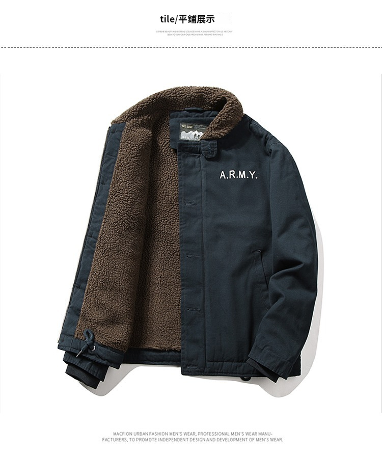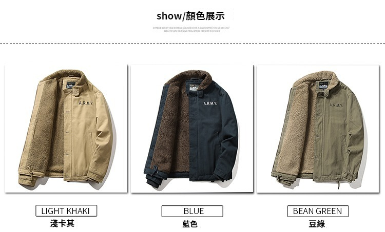 第 2 件 : 羊羔毛短款外套男冬季加厚毛領加絨工裝飛行員夾克棉服羔羊絨棉衣