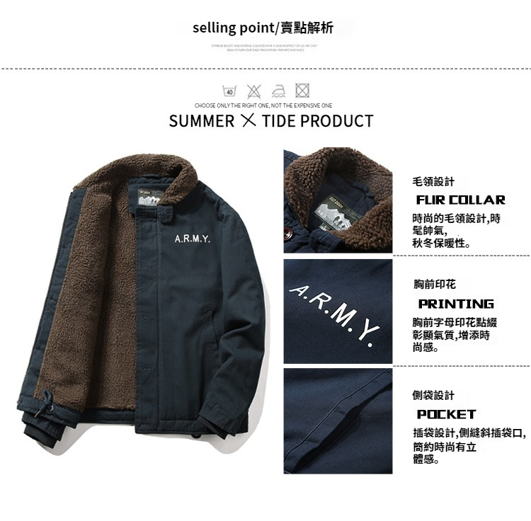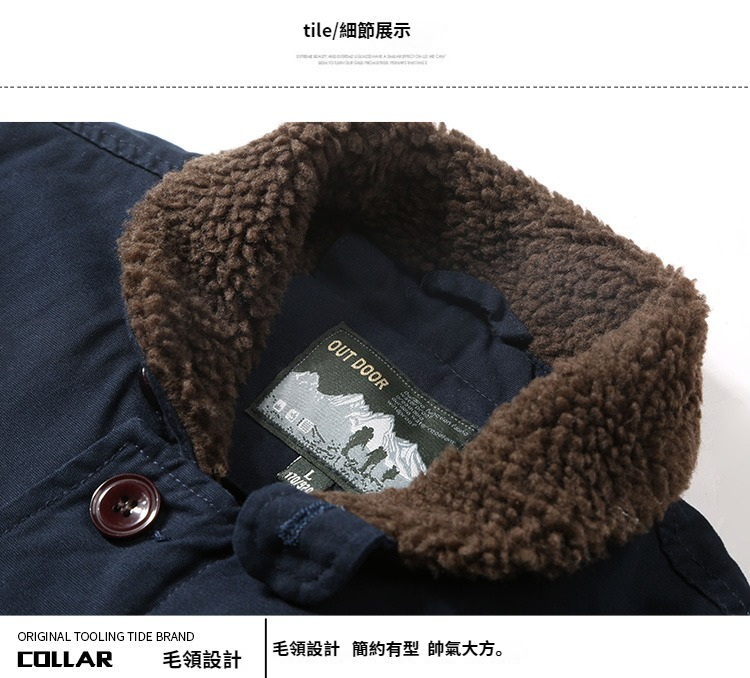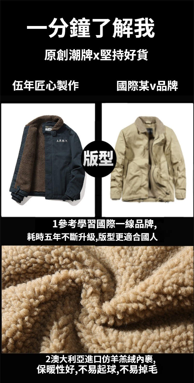 第 1 件 : 羊羔毛短款外套男冬季加厚毛領加絨工裝飛行員夾克棉服羔羊絨棉衣