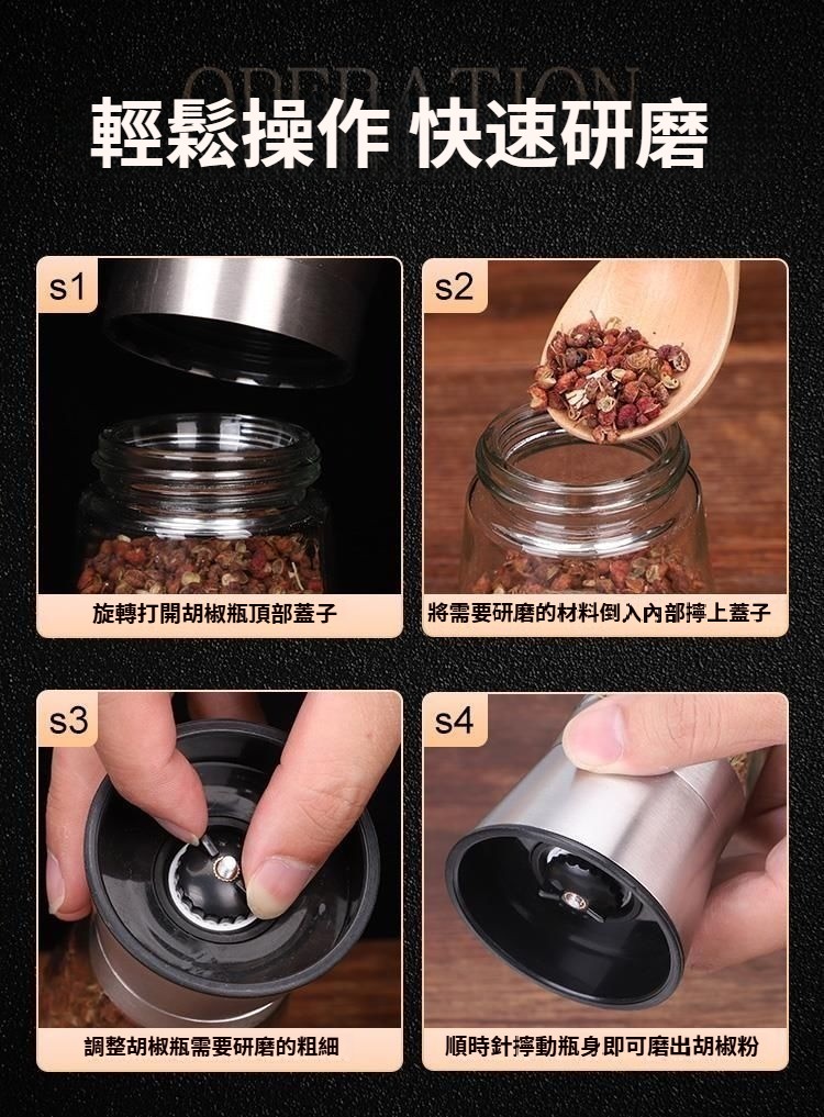 第 1 件 : 胡椒研磨器手動海鹽花椒粒研磨瓶黑白胡椒粉磨粉神器調味料罐現磨