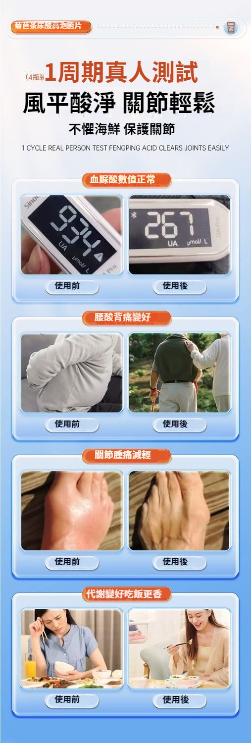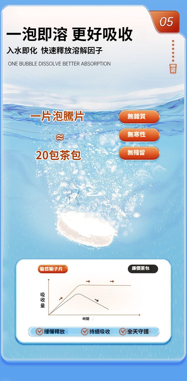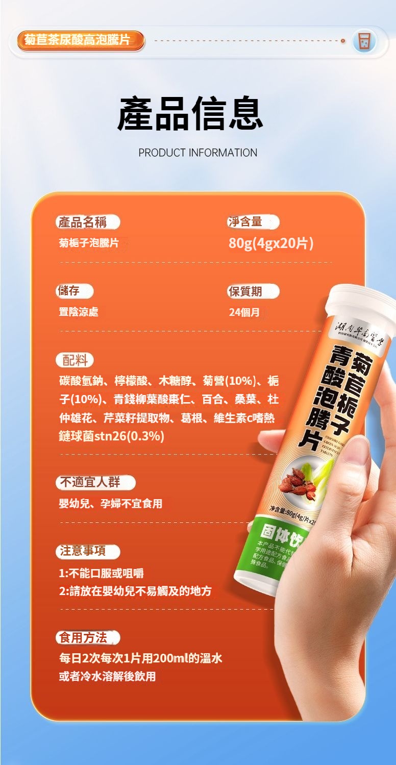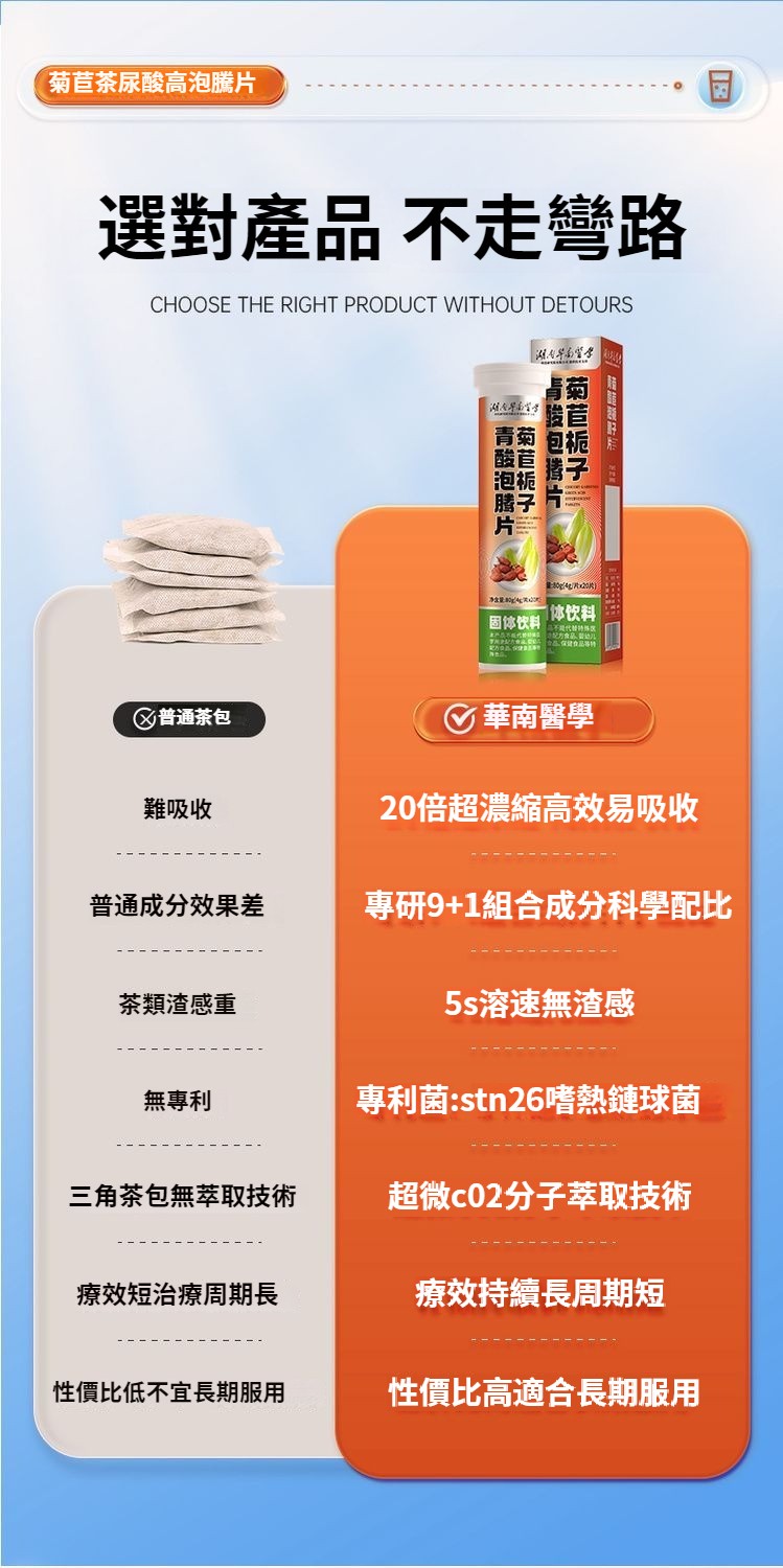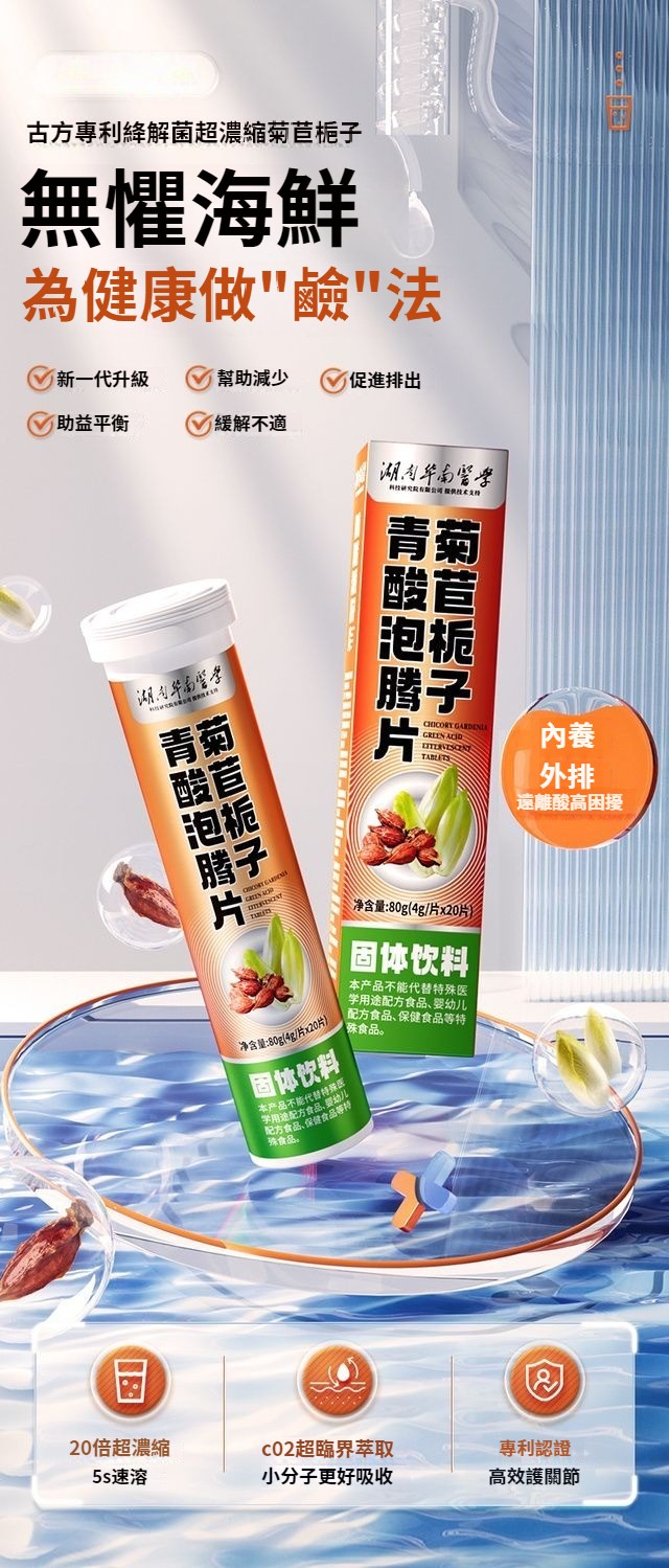 【20倍濃縮菊苣梔子泡騰片】是清嘌不是降嘌 脲酸高越拖越嚴重, 1.結石結晶、腫脹疼痛;2.損傷關節,出現畸形;3.活動受限,功能障礙;4.脲酸過高損壞身體機能;5.尿酸沉淀導致腎臟功能異常;6.動脈硬化疼痛反復;添加維生素C 一通毀所有 ,一片解風愁!找回元氣自信的你,促進營養吸收,促進骨骼生長,提高免疫力。一泡即溶 更好吸收。 NT$ 1280